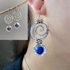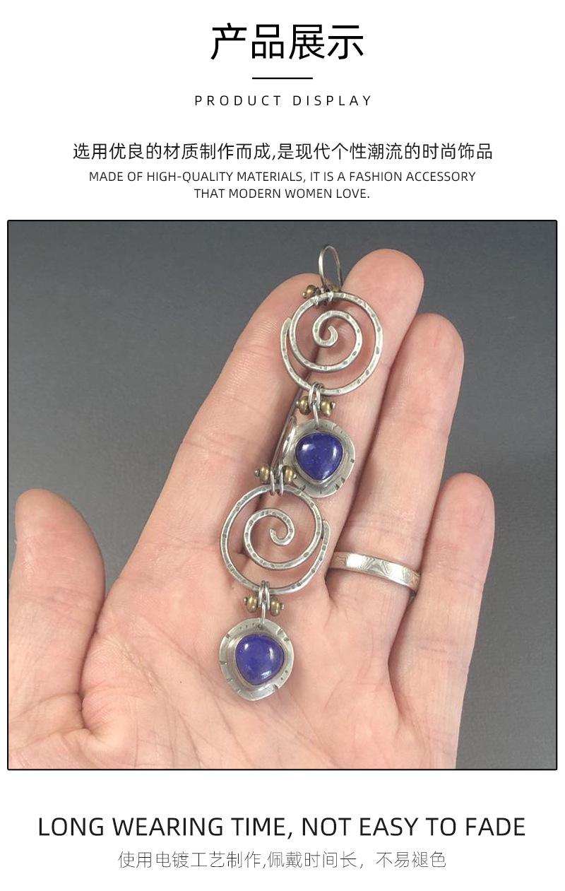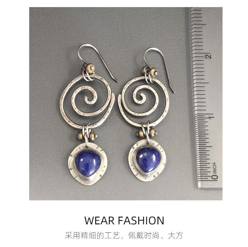 Pendientes de estilo étnico con círculo creativo, pendientes de lapislázuli de plata tailandesa europea y americana, pendientes de joyería de alta gama personalizados para mujer.