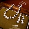 Collar de dos piezas con pendientes ovalados de lujo con incrustaciones de diamantes, elegante collar de clavícula de alta gama de estilo europeo y americano para mujer.