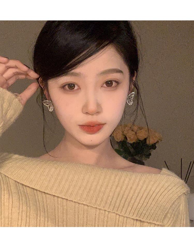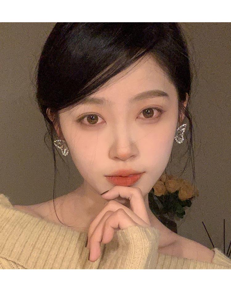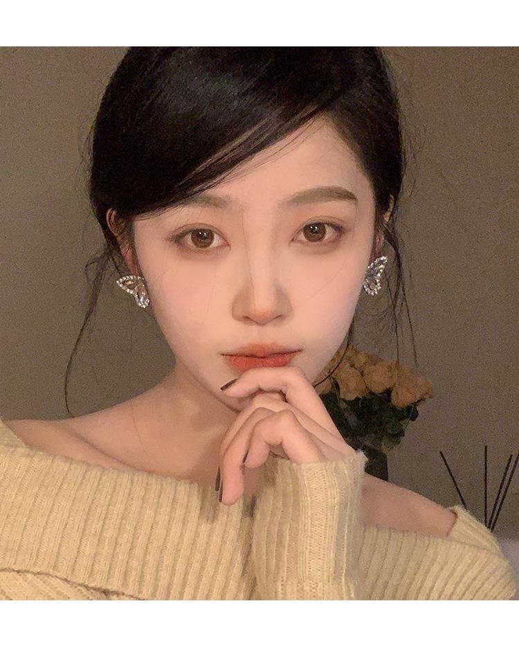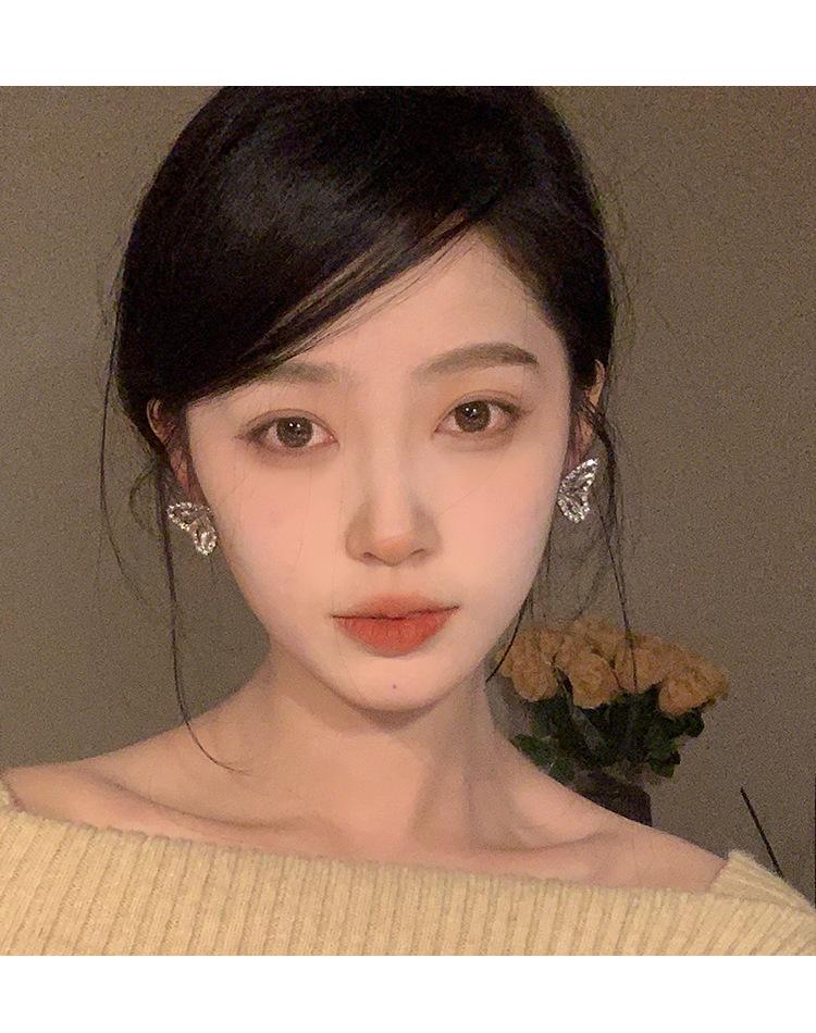 Pendientes elegantes con alas de mariposa y diamantes para mujer, diseño de nicho, ligeros y lujosos, nuevos pendientes de moda 2023.