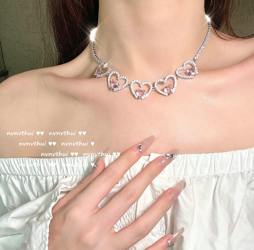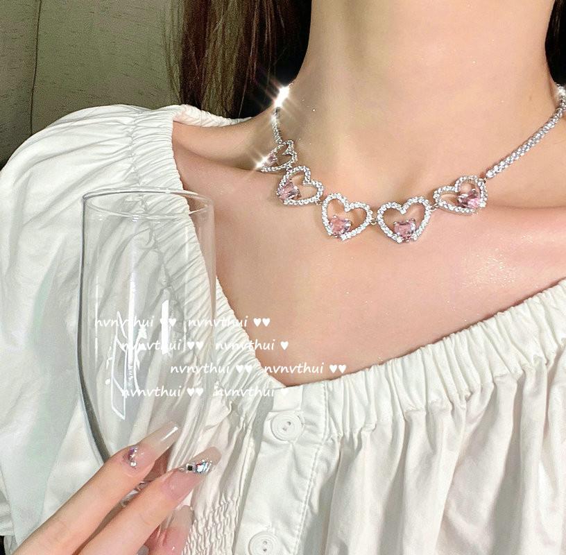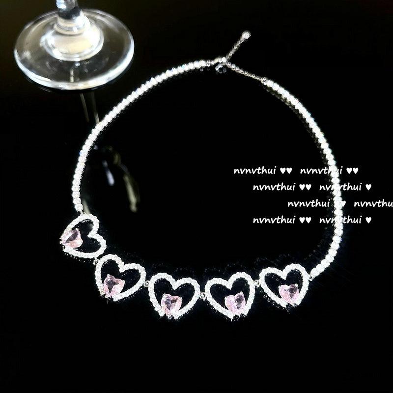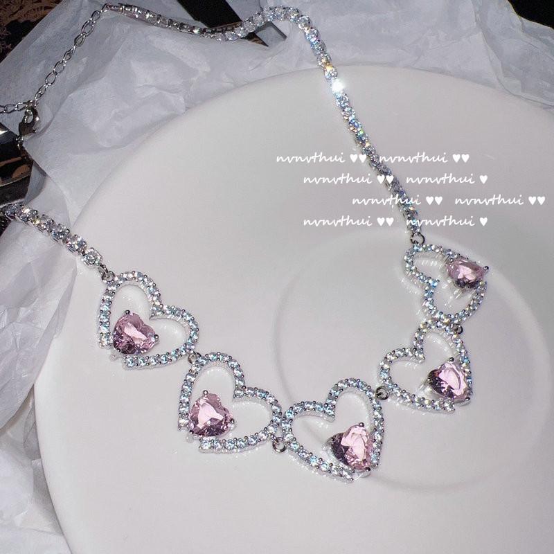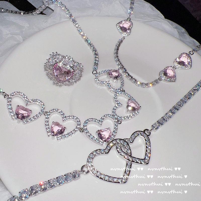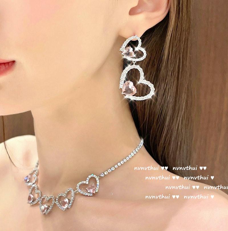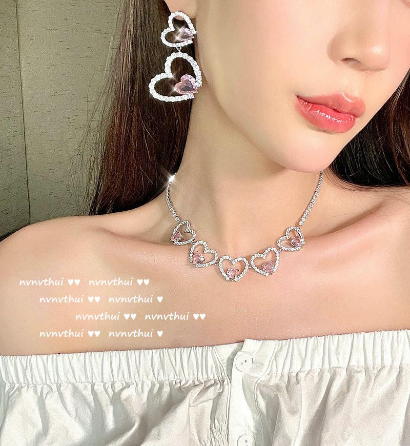873K Confession Parallel Powder Love Necklace, 873K Confession Parallel Pink Love Earrings, 818Y Schubert powd...