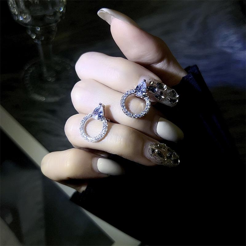 Elegantes pendientes de estrella para mujer, nuevos pendientes circulares de moda, pendientes franceses simples retro con nicho de diamantes completos, cara delgada