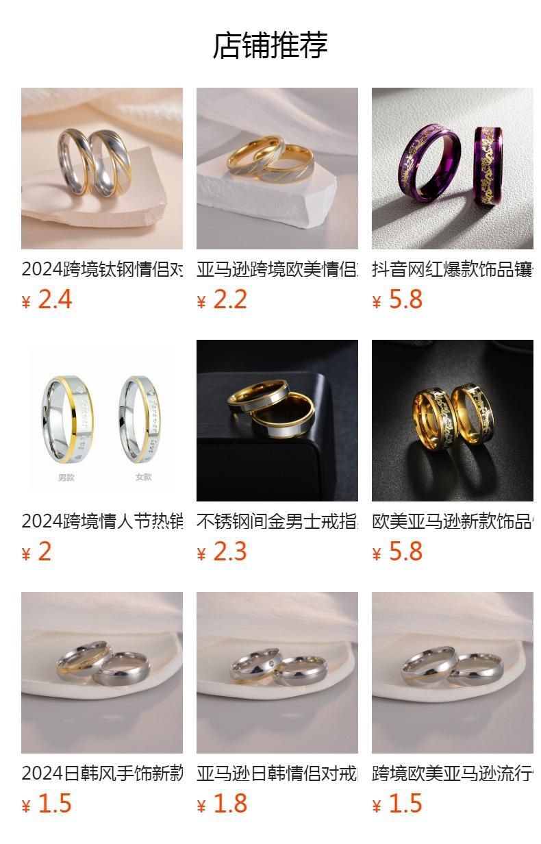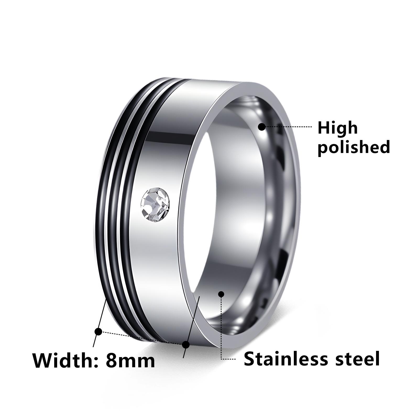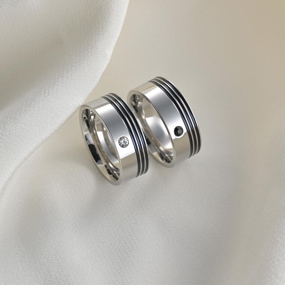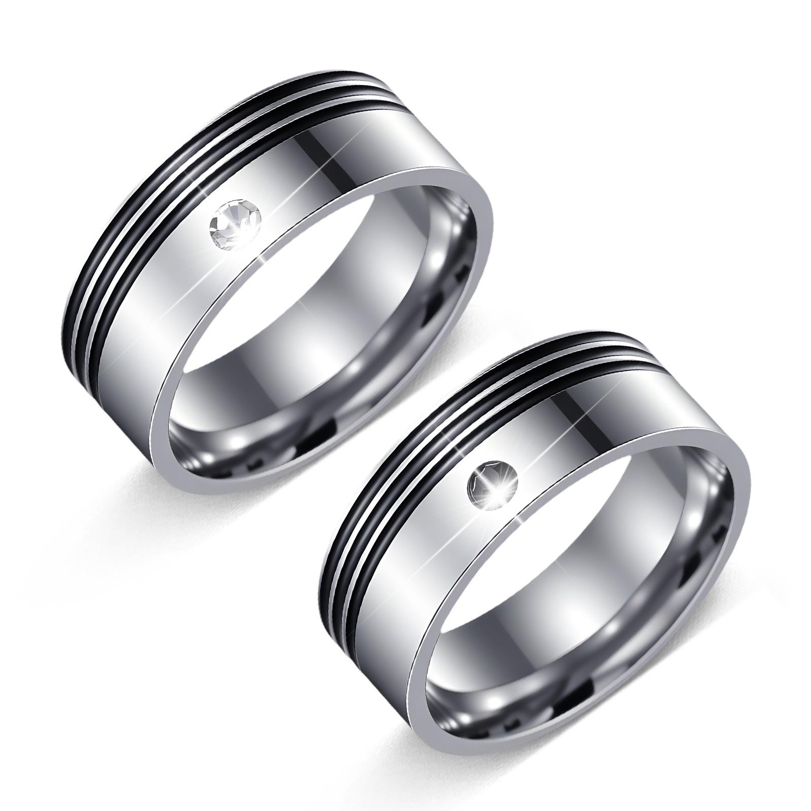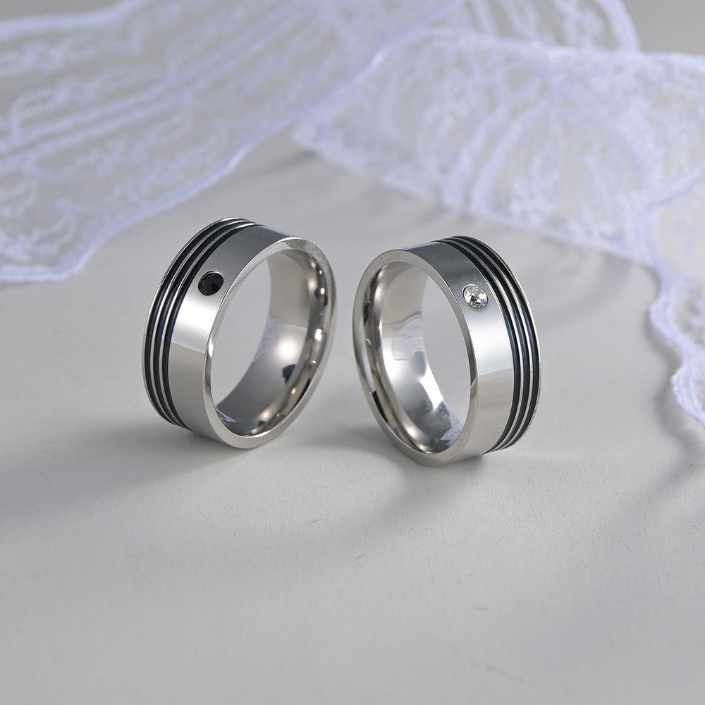 Suministro de Joyería de Fábrica de Amazon Transfronterizo Nuevos Anillos para Pareja con Circonita Incrustada con Goteo de Aceite Anillos de Acero Titanio