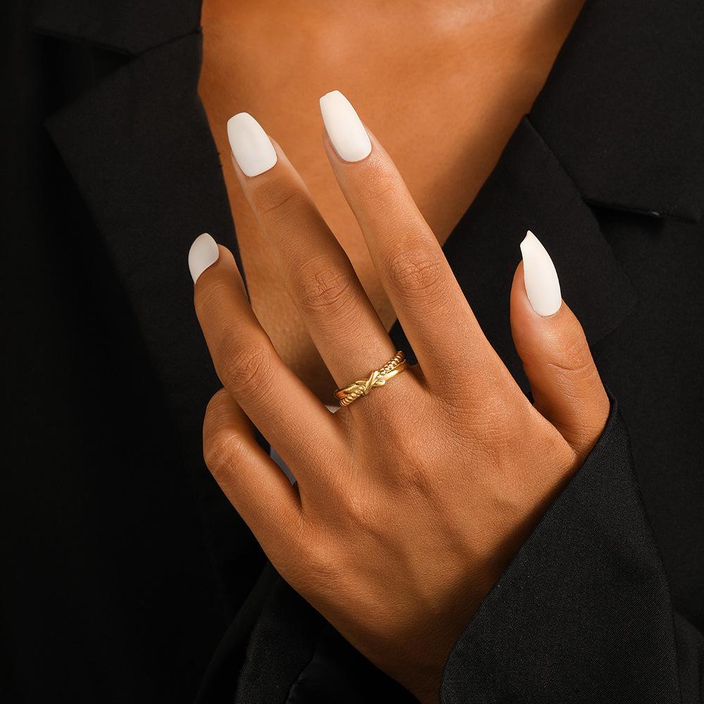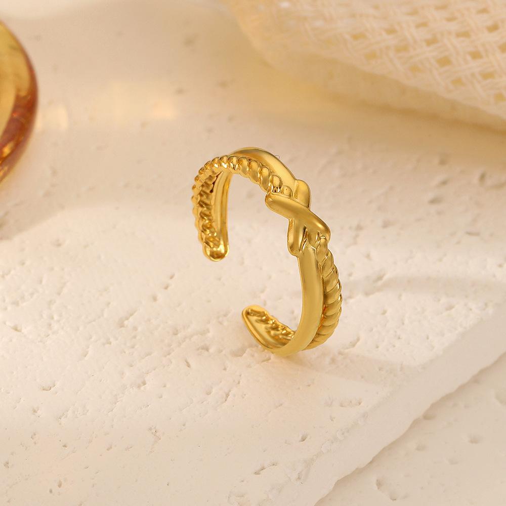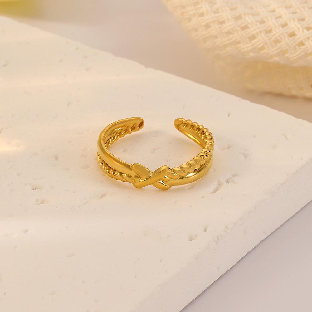 Compra Anillo de acero inoxidable personalizado, versátil, abierto, ajustable, con cruz de oro y nudo, nuevo, de moda francesa, venta al por mayor al por mayor en Joom.pro