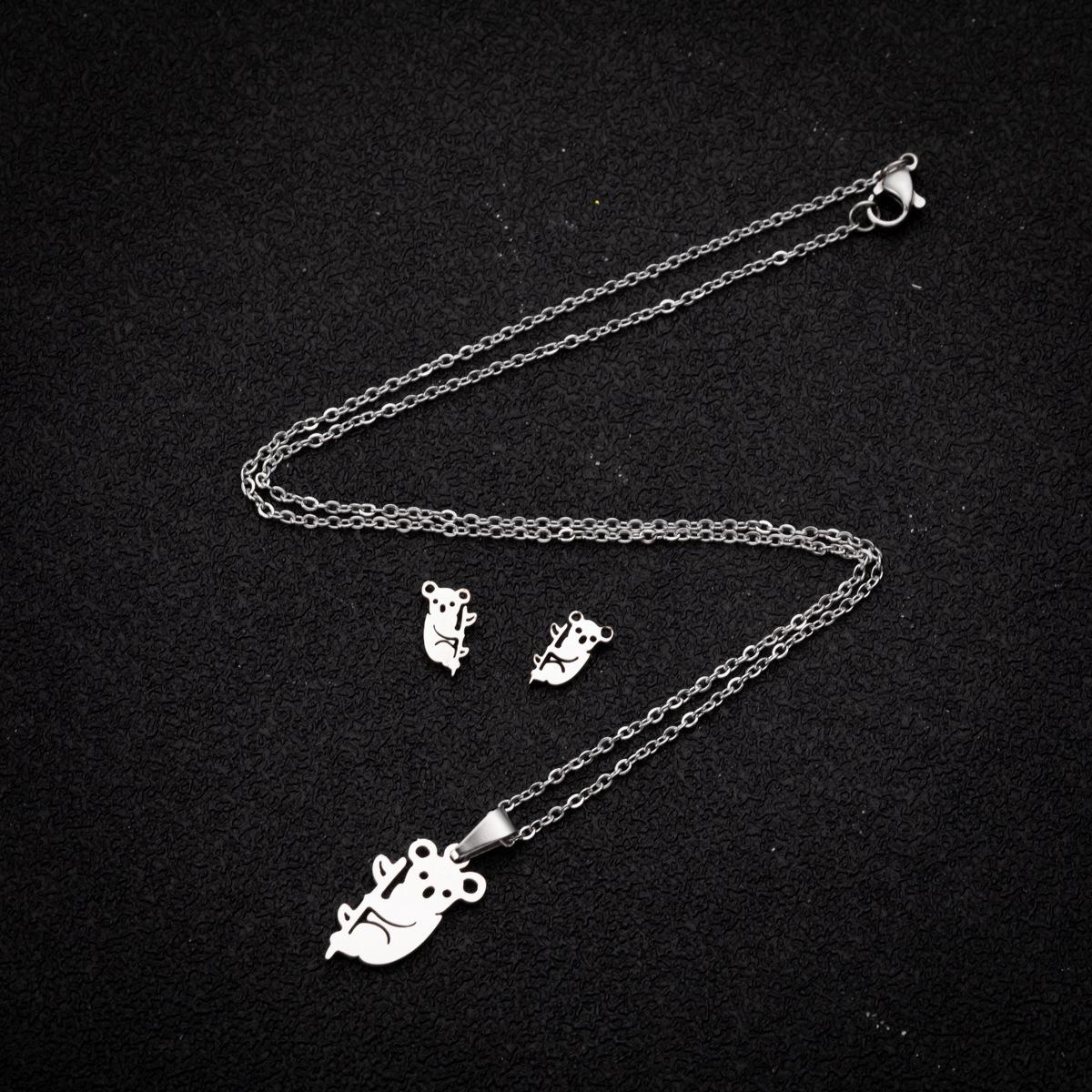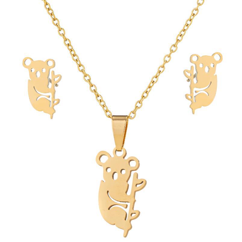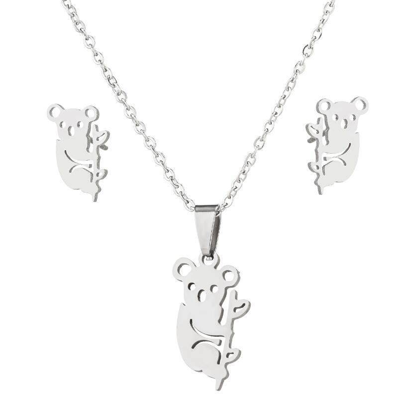 Compra Aretes de Animales de Acero Inoxidable Frescos Pequeños Estilo Bosque Ins Nuevo Lindo Koala Colgante Simple Conjunto de Joyería de Dos Piezas al por mayor en Joom.pro