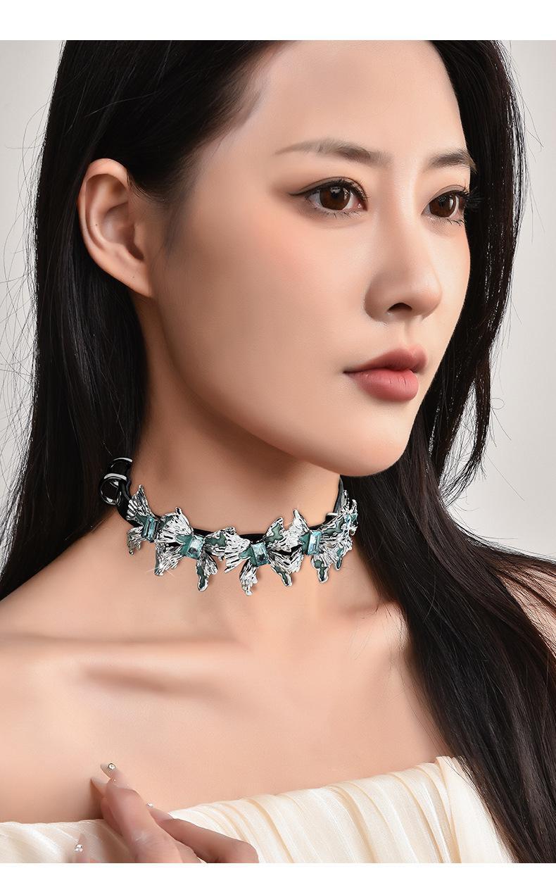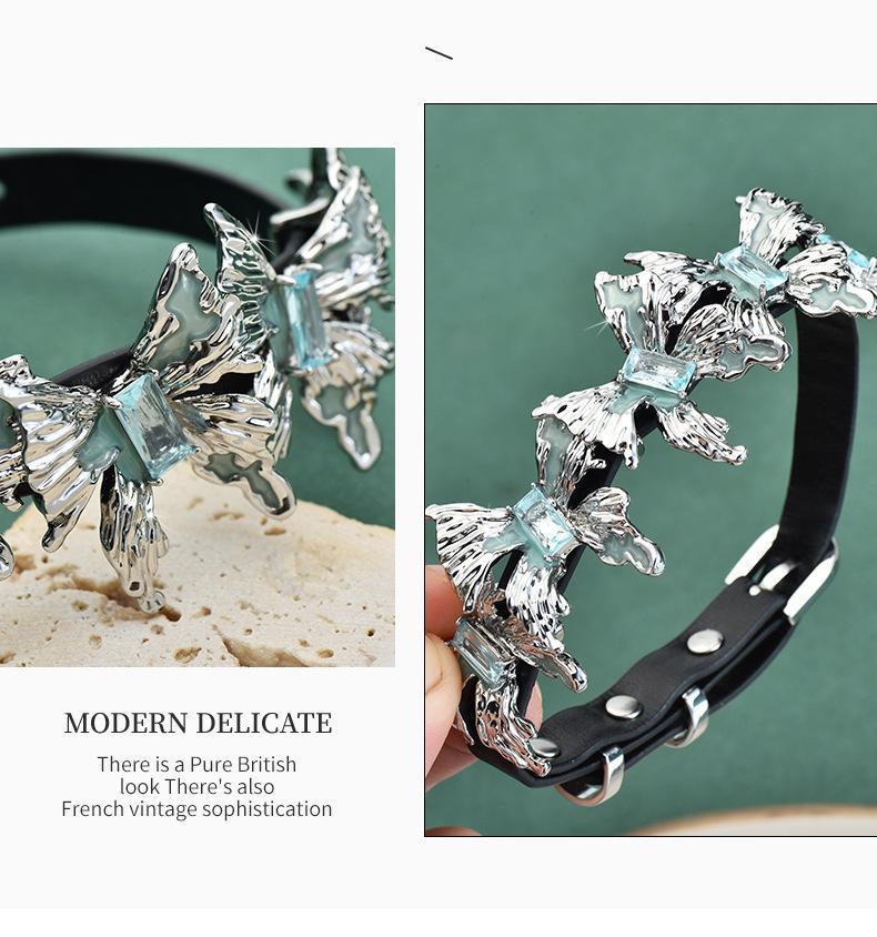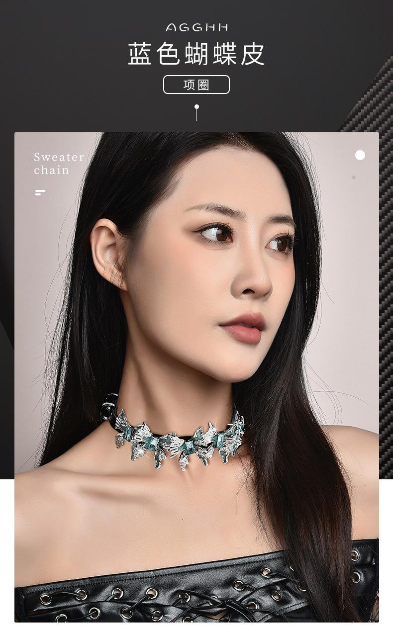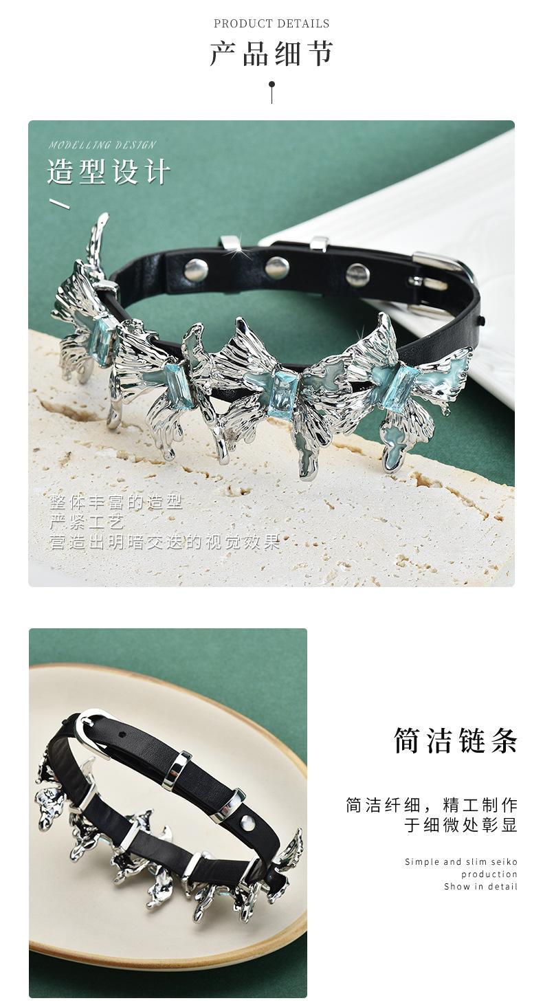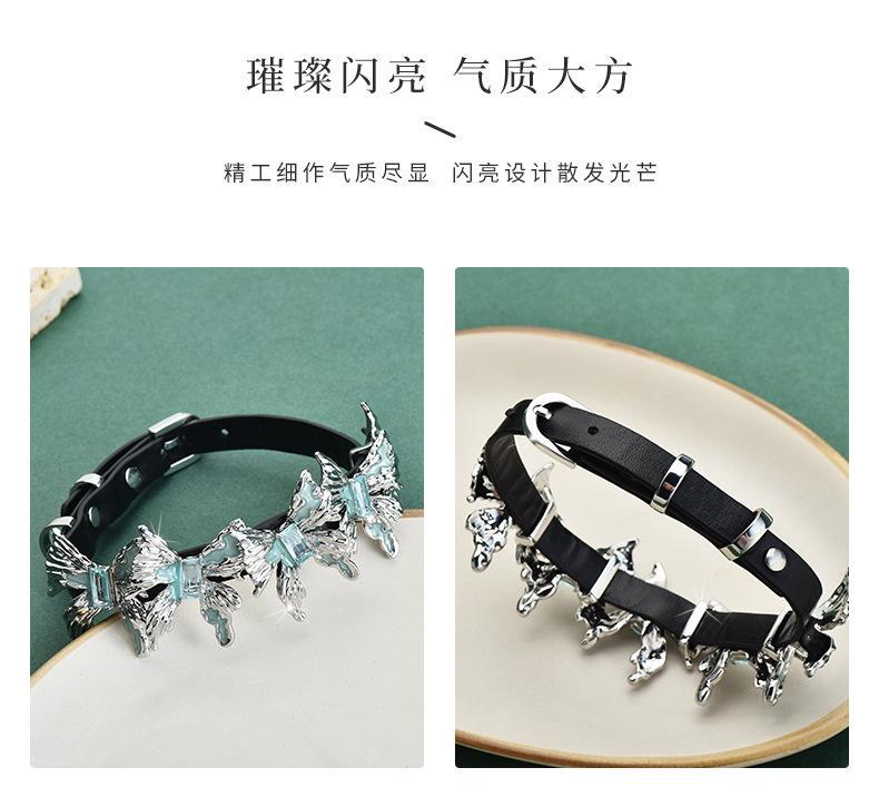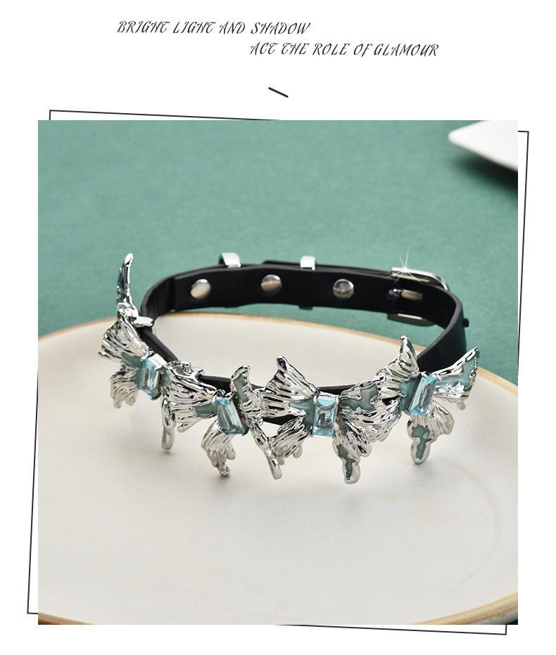 Venta directa de fábrica, collar de cuero con múltiples mariposas, collar de cuero con combinación, anillo para el brazo, personalidad de moda femenina, rock, hip hop, venta al por mayor