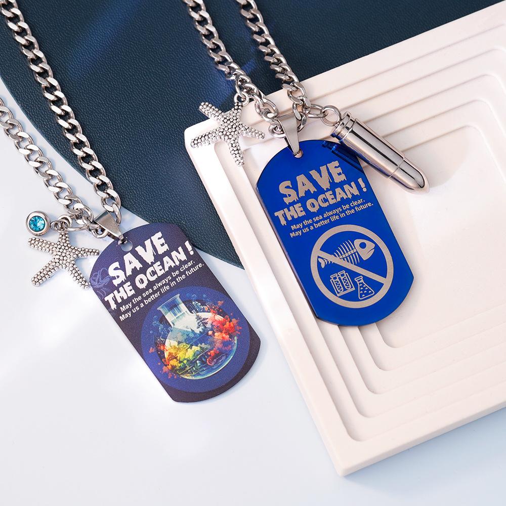 Marine Military brand necklace + single-sided color printing content, Starfish bullet army necklace + single-s...