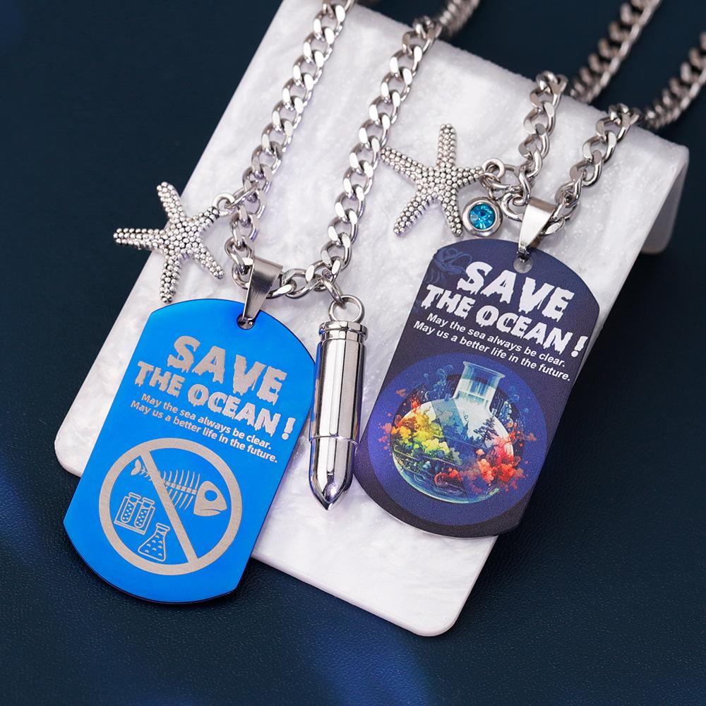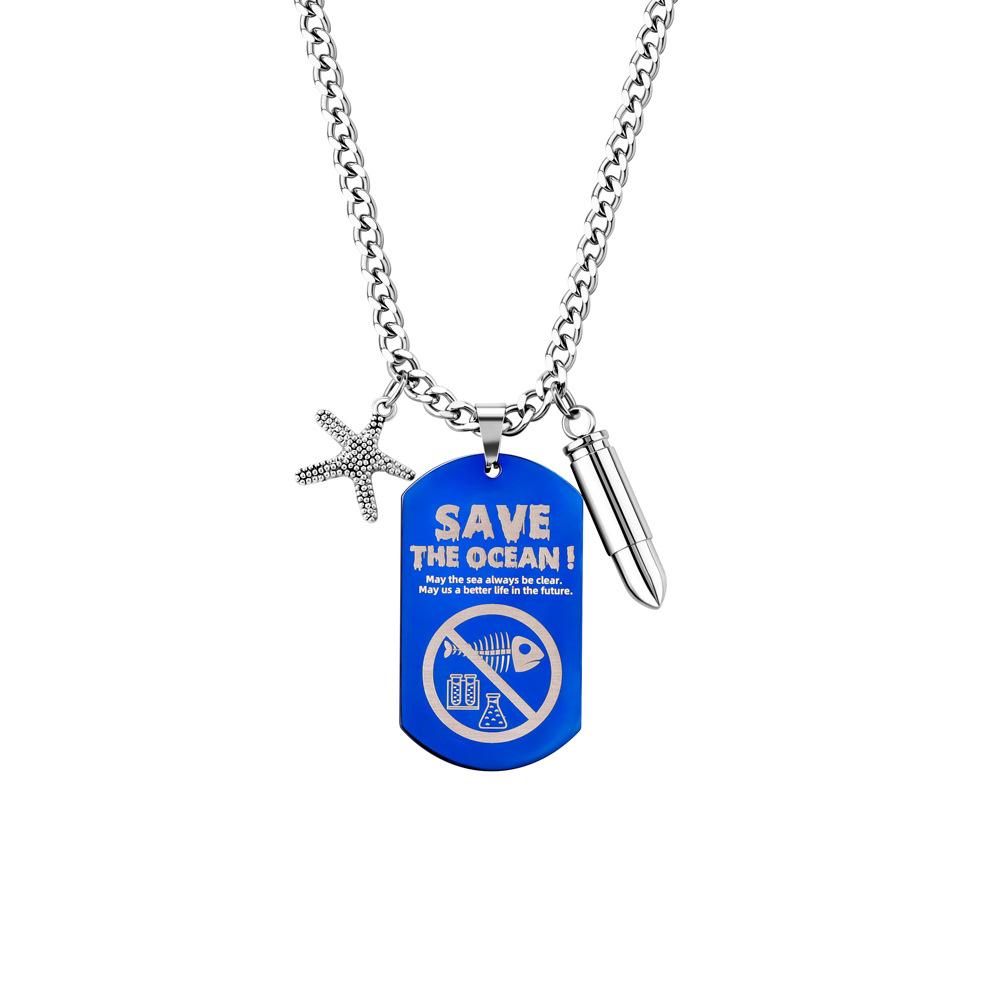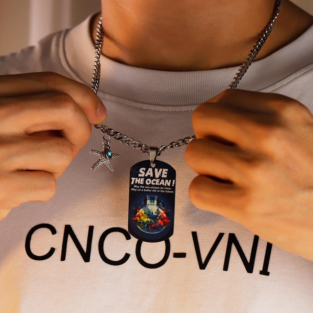 Collar de Océano Creativo Personalizado Nuevo Transfronterizo Europeo y Americano Diseño Nicho Grabado Marca Militar Cadena Clavícula Colgante Joyería