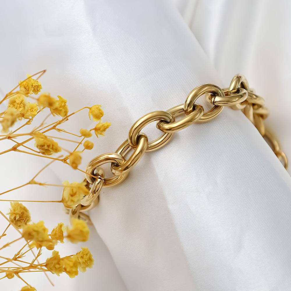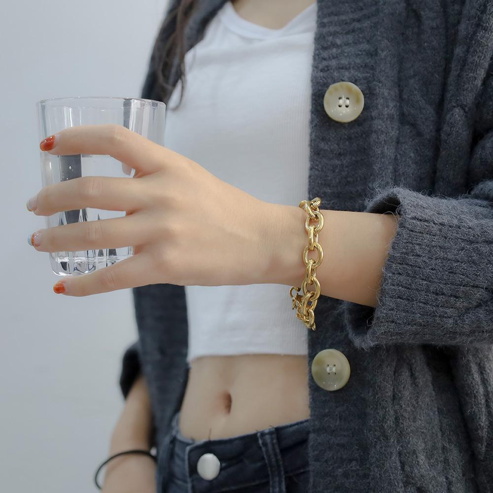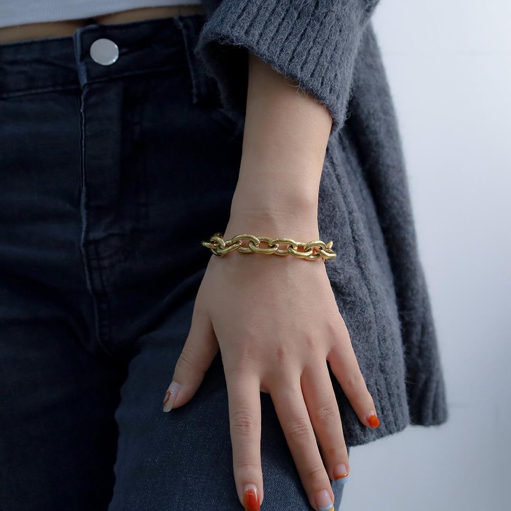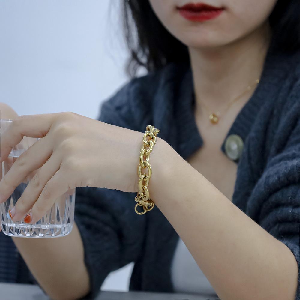 Pulsera europea y americana de acero de titanio para joyería, pulsera retro de Joker para niñas, pulsera de alto sentido, pulsera en forma de O chapada en oro de 18 quilates, venta al por mayor