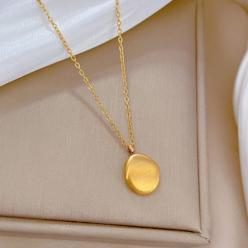 [acero de titanio de cuerpo completo] temperamento de personalidad de frijol dorado con forma especial viento minimalista horno collar de oro real femenino cadena de clavícula ins