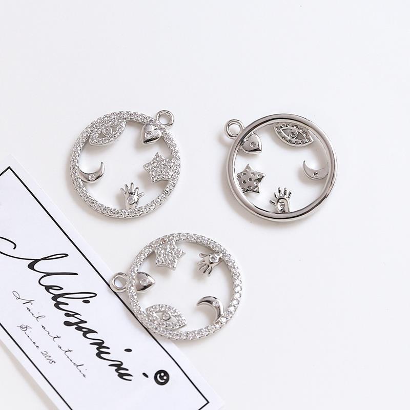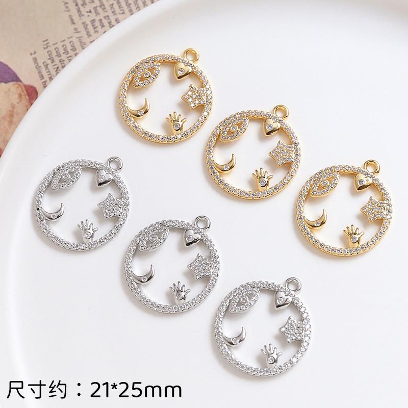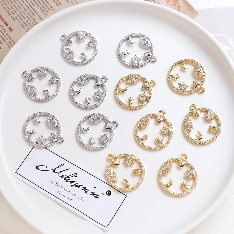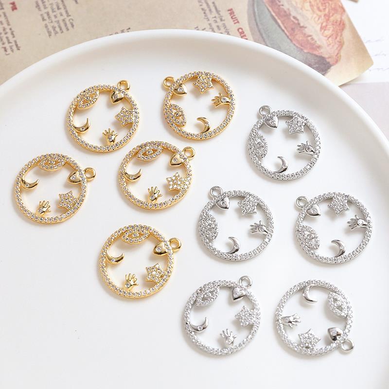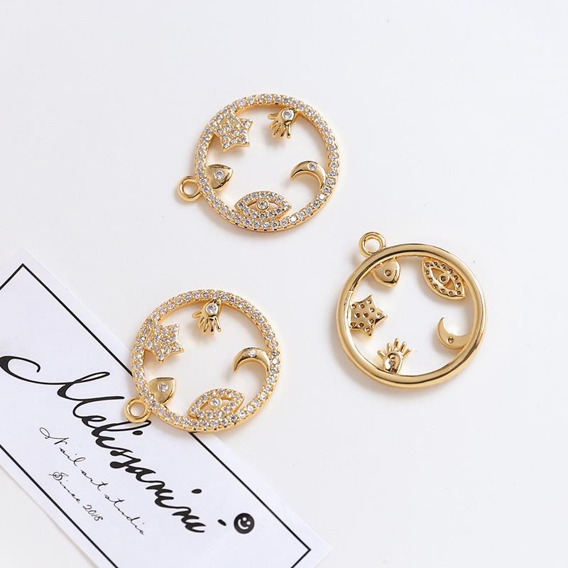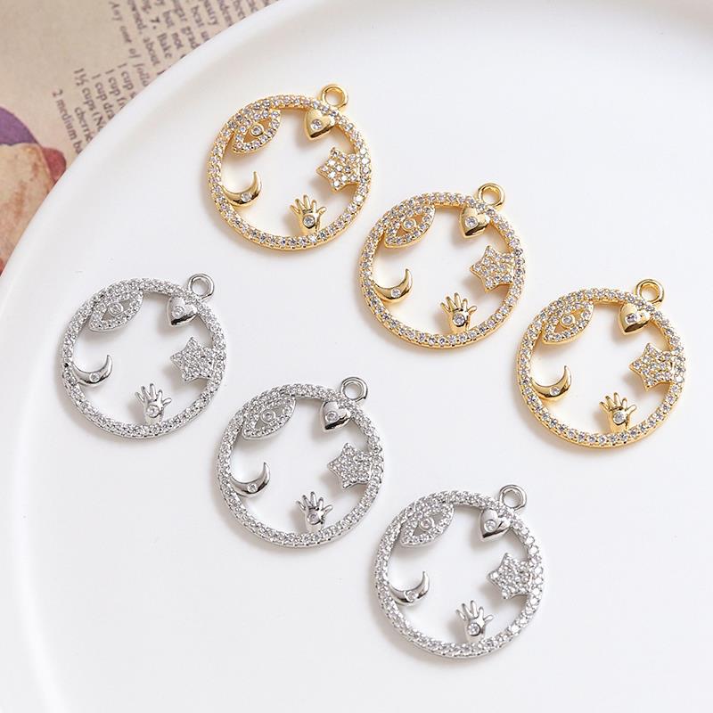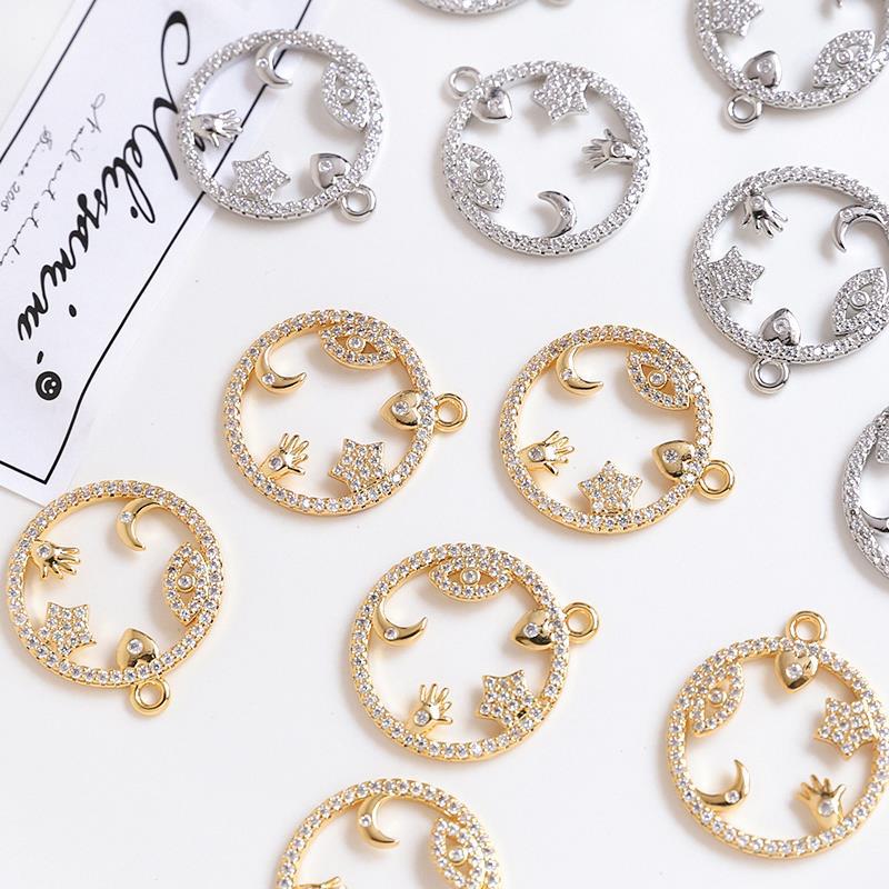 Colgante hueco de estrella de luna de circonita con microincrustaciones de oro real bañado en cobre, joyería hecha a mano, collar, pendiente, colgante, accesorios, material