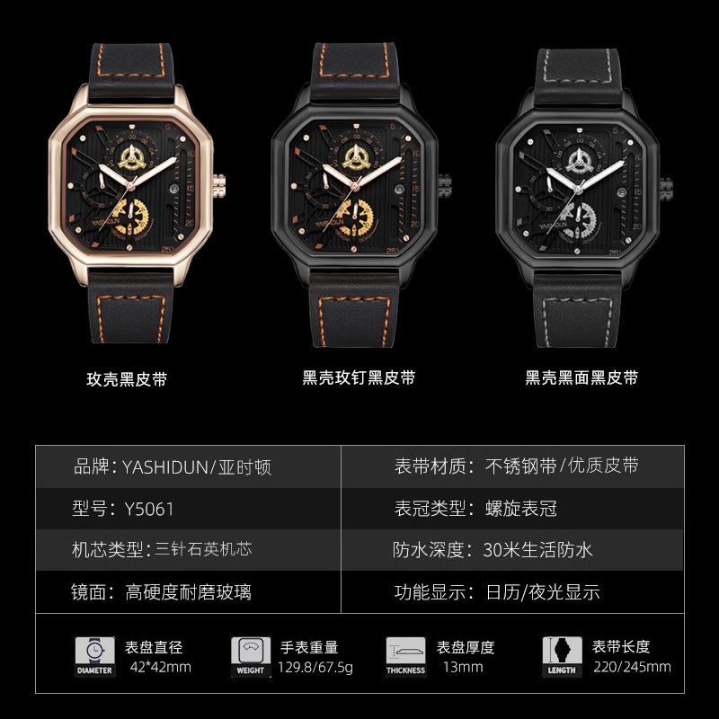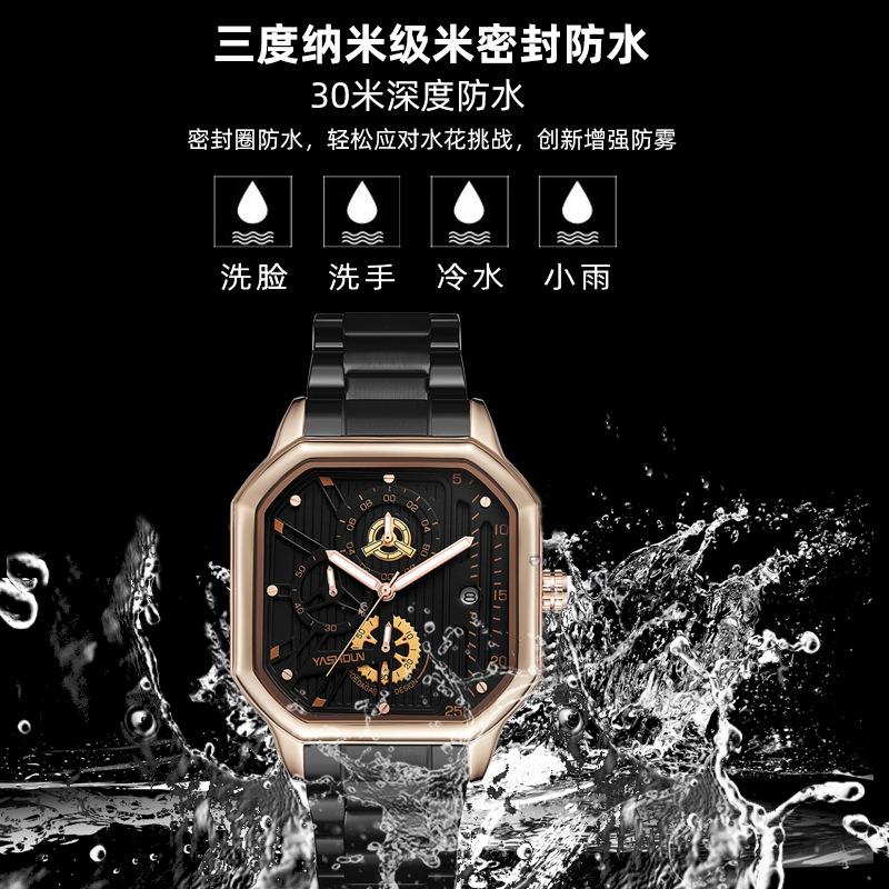 Reloj Aston para hombre, nuevo, cuadrado, resistente al agua, luminoso, de moda, para comercio exterior, con correa y calendario, deportivo.