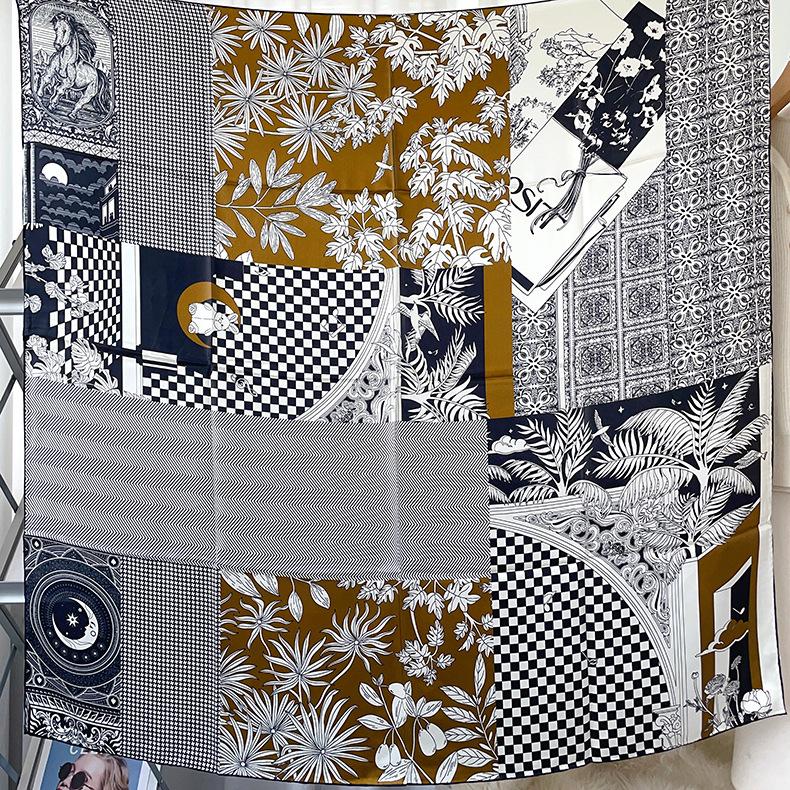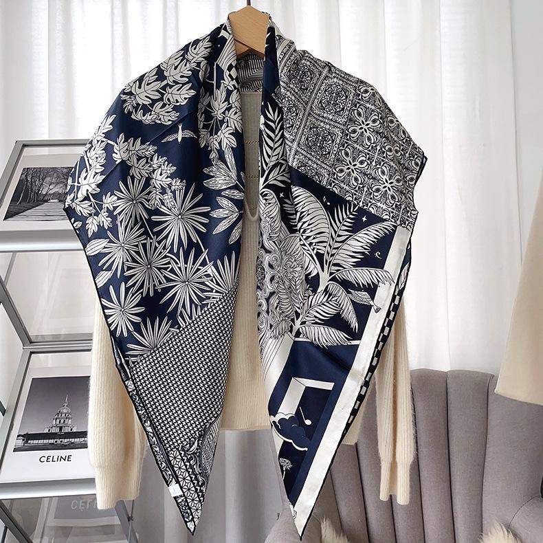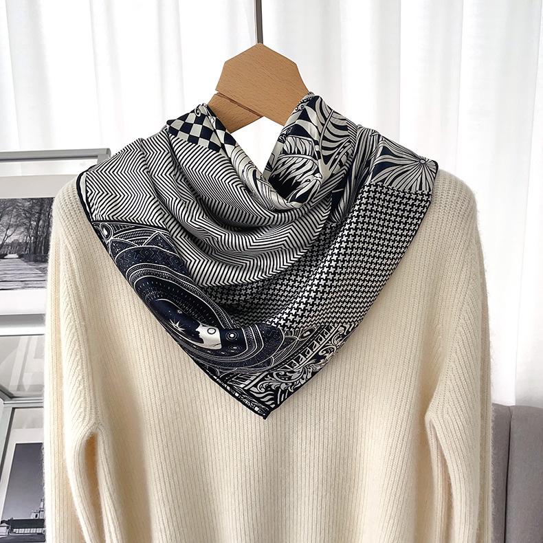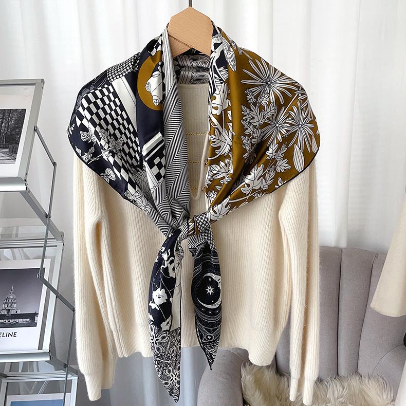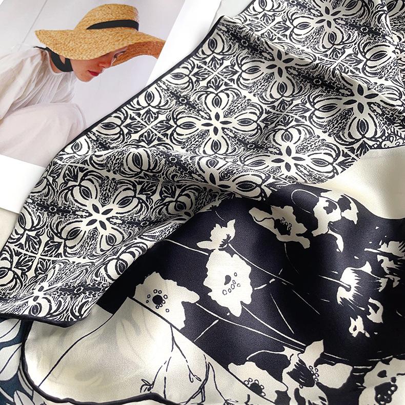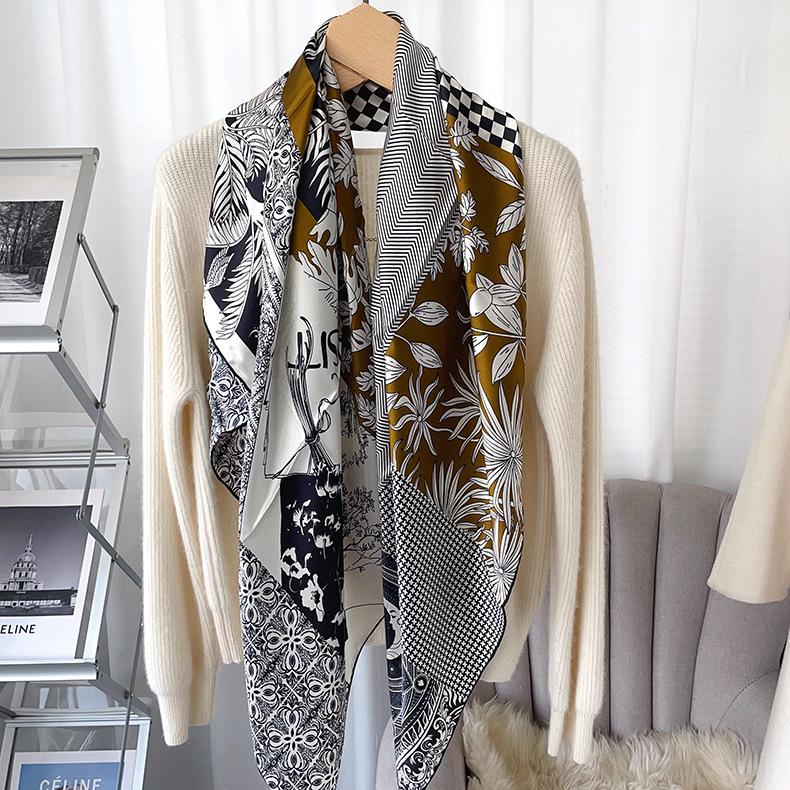 Bufanda de Seda Distintiva de Moda Primavera y Otoño Gris Multifuncional Bufanda Cuadrada Grande Mujeres Chal Bufanda de Seda de Morera