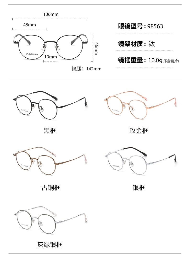 Montura de titanio 98563 retro montura redonda pequeña 48 adecuada para altura hombre japonés mujer suave estudiante lindo suministro directo de fábrica