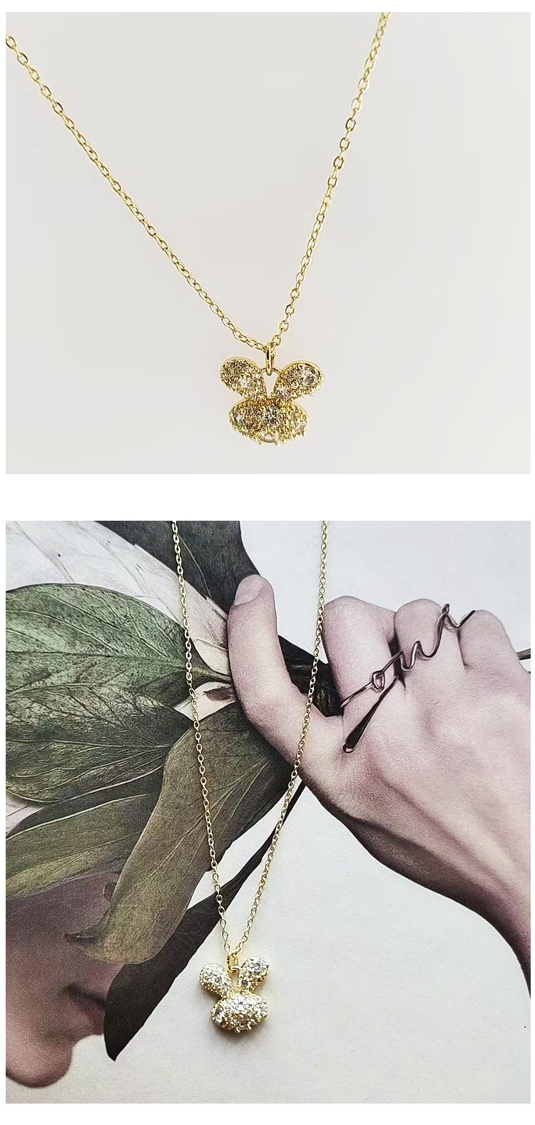 Collar de oro de 1 quilate con diamante de acero de titanio para mujer, diseño de nicho con temperamento de lujo ligero, colgante de Mickey