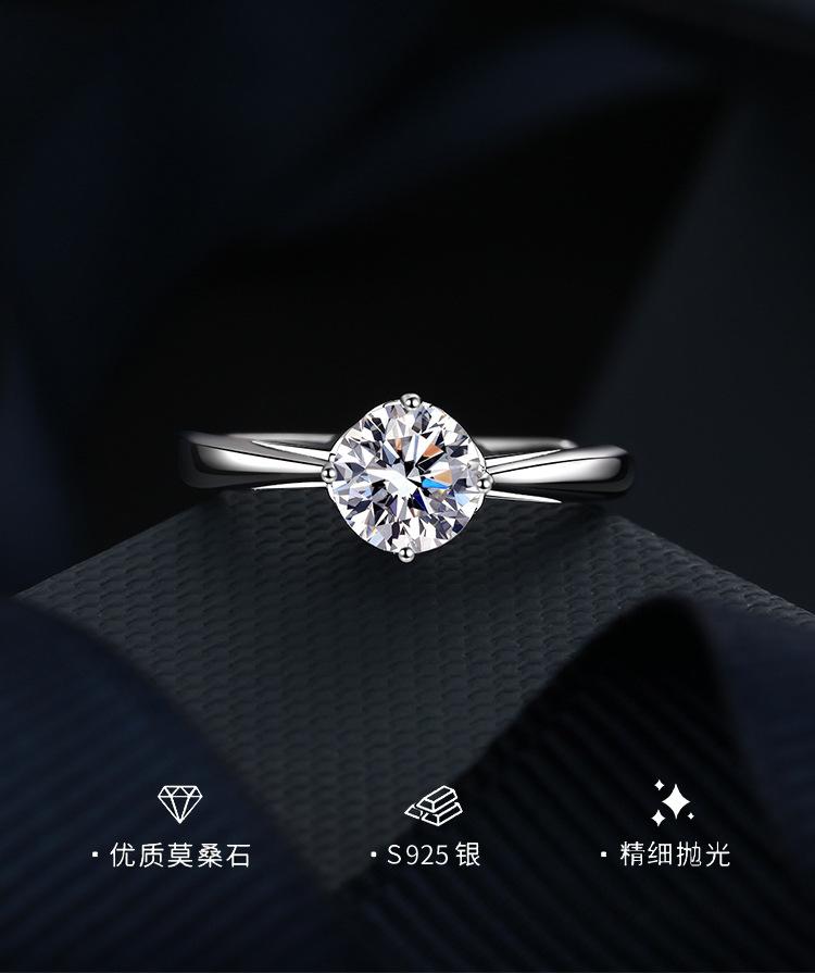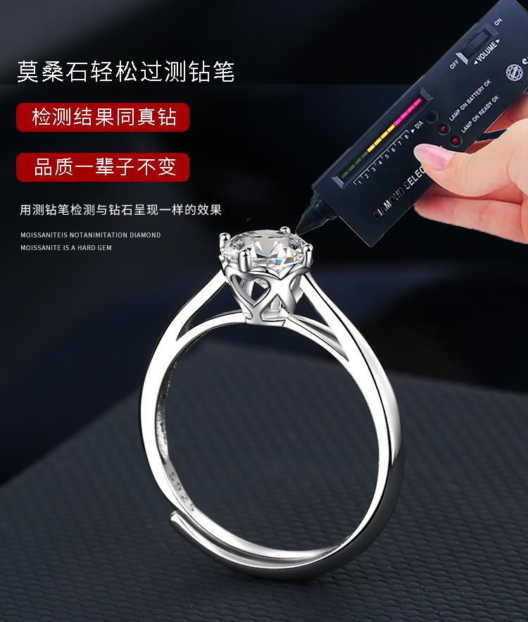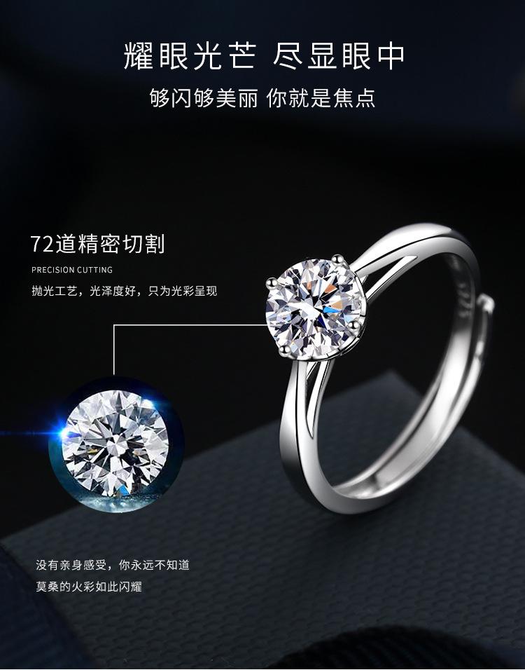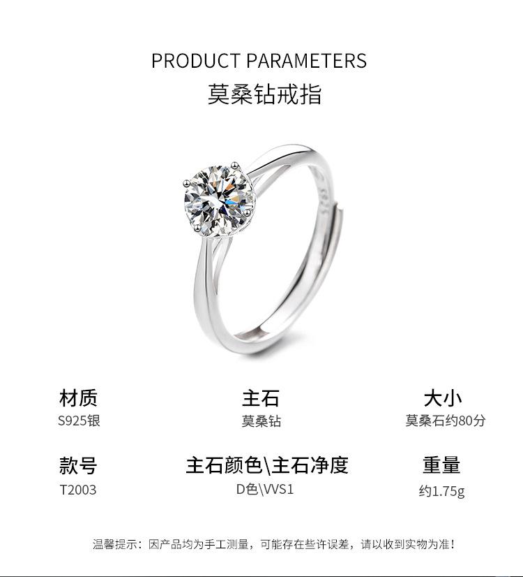T2003-Ring [Mosan Diamond + Certificate + Black Card + Waist Code] 80 Points Opening adjustable (sterling silver s925)
