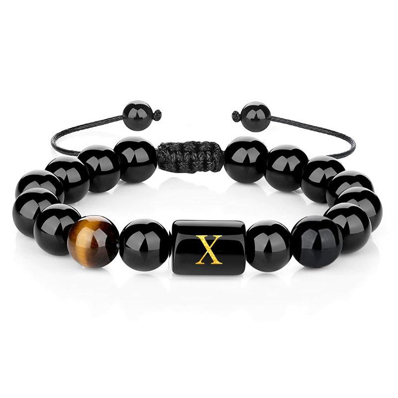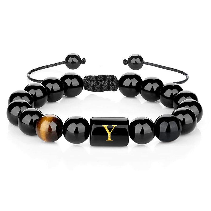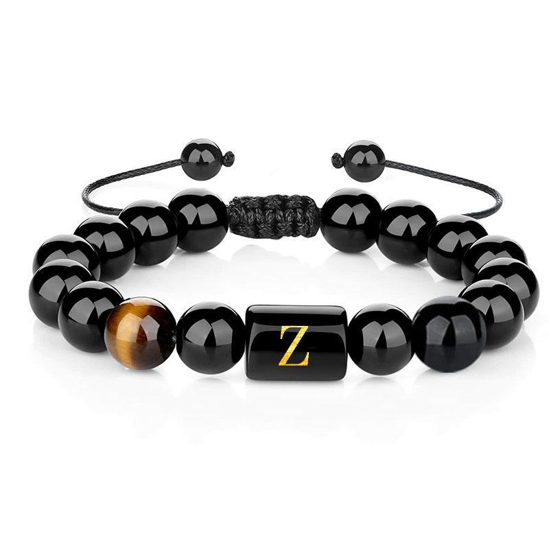 Pulsera Transfronteriza de Ónix Negro Caliente Obsidiana 26 Letras Tejida Ajustable Pulsera de Cuentas Mujeres Explosiva Venta al por Mayor