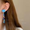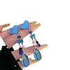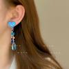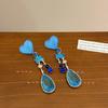 Pendientes de borla con lazo de corazón azul, elegantes y modernos, largos, con colgante de gota de nicho de alta calidad.