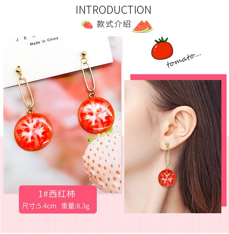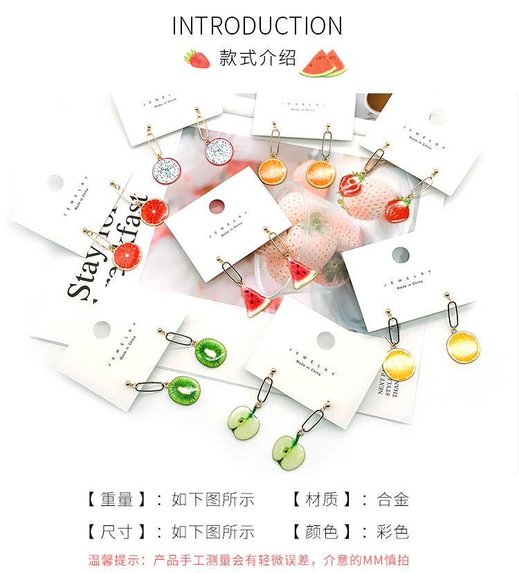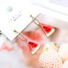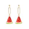Pendientes de verano pequeños y frescos con forma de fruta, sandía, fresa y manzana, largos y elegantes para mujer.
