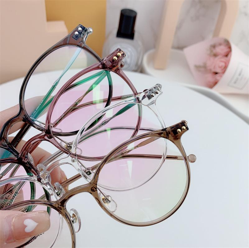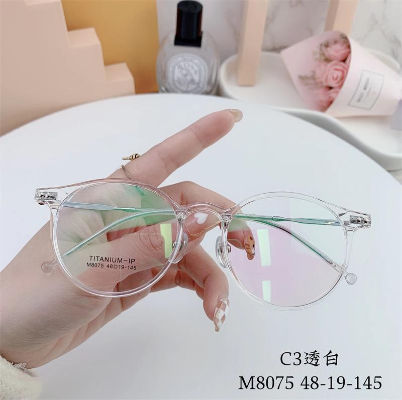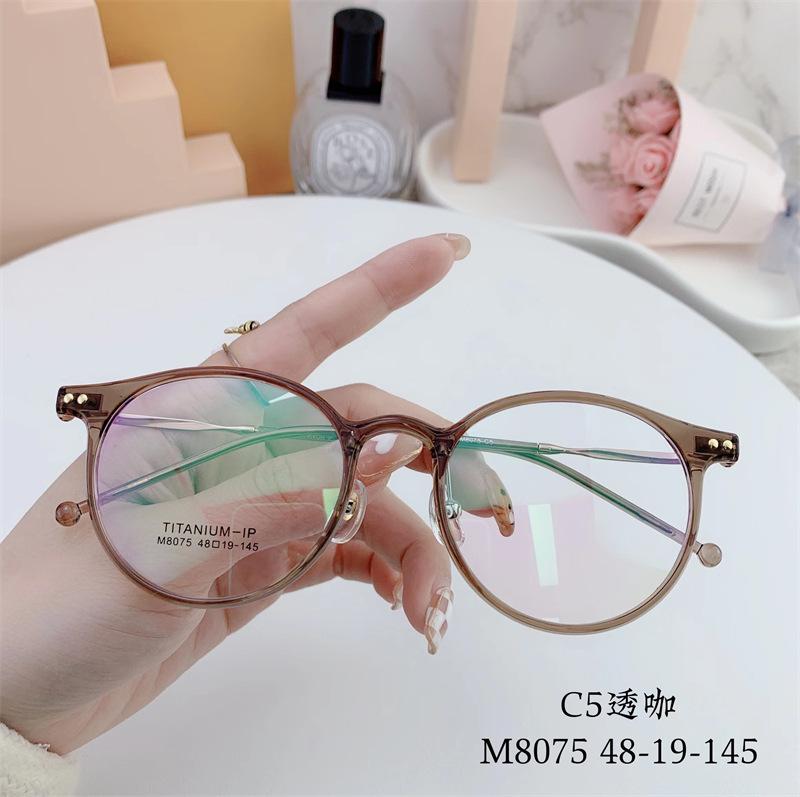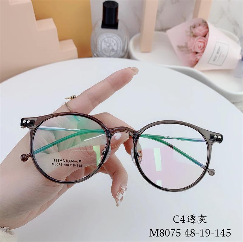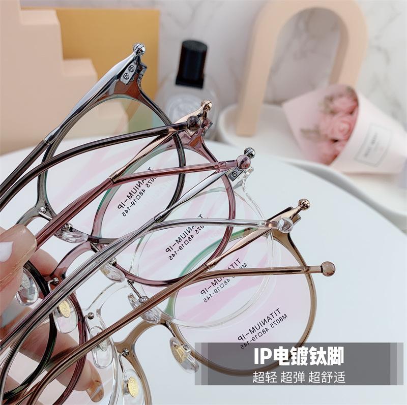 2022 nuevo estilo coreano montura de gafas de semi-titanio ultraligera montura TR gafas redondas retro para mujer montura de gafas con chapado IP 8075