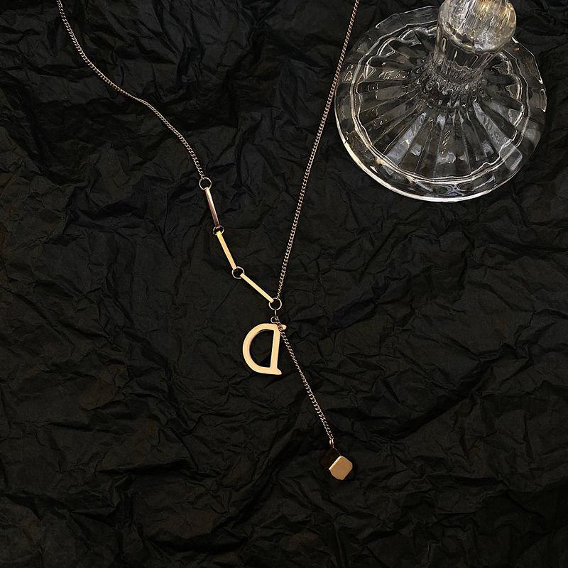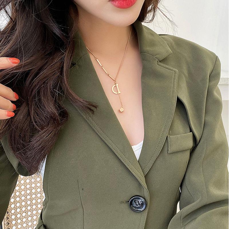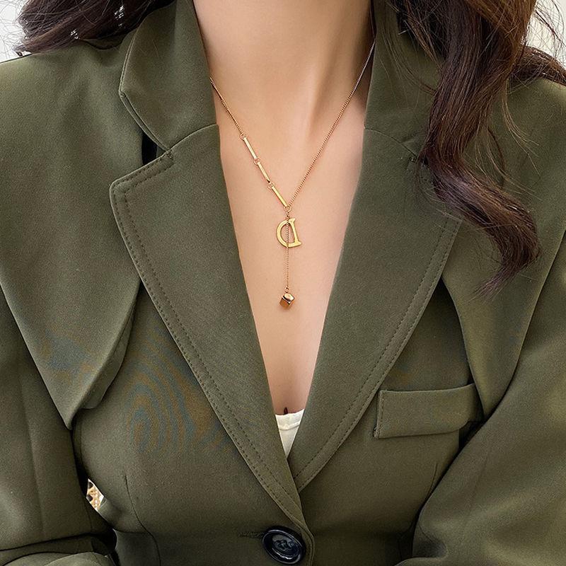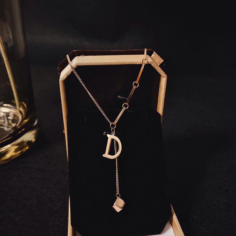 Collar de Acero de Titanio para Mujer Trendy Popular en Internet Simple Combinable Colgante Letra D Collar Corto Elegante para Mujer Estilo Coreano ins Colgante