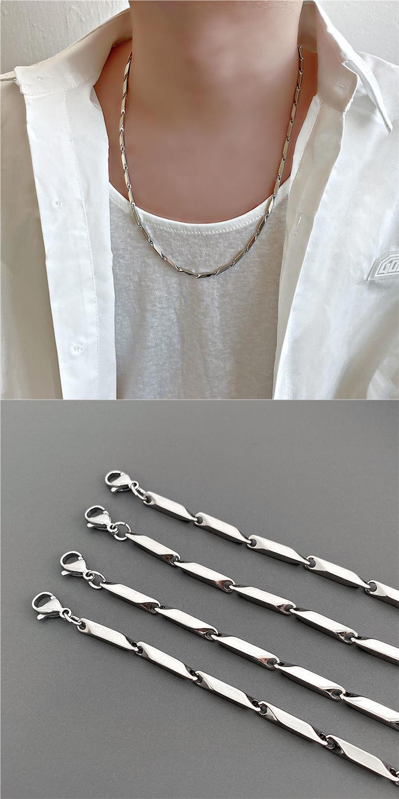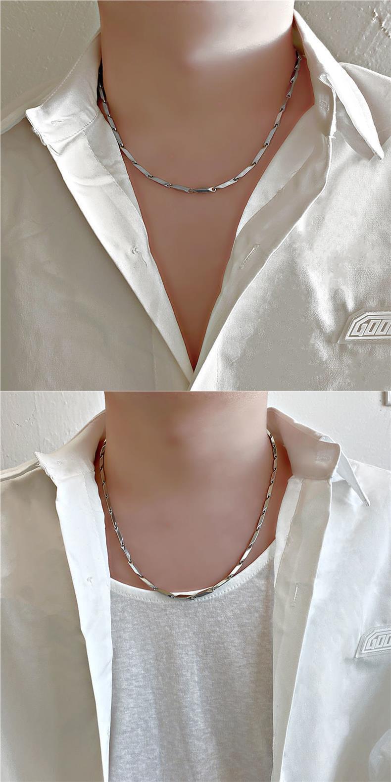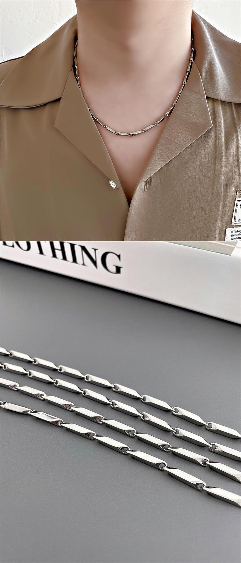 Collar de bambú suave para hombre, moderno, personalizado, sencillo, cadena de acero de titanio, cadena de plata con diamantes, elegante cadena de clavícula estilo hip-hop para mujer.