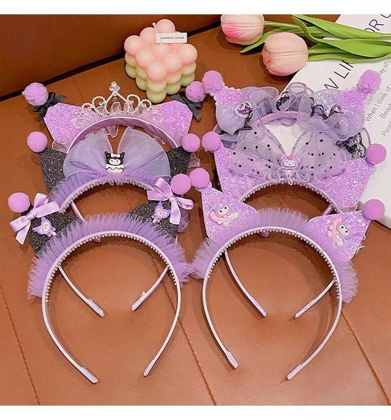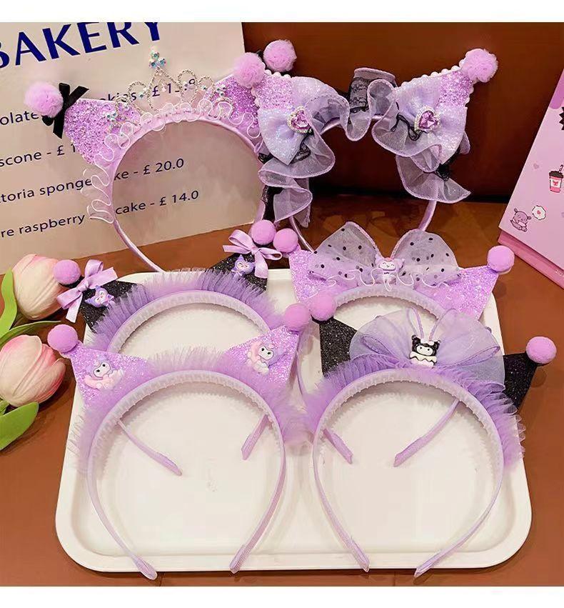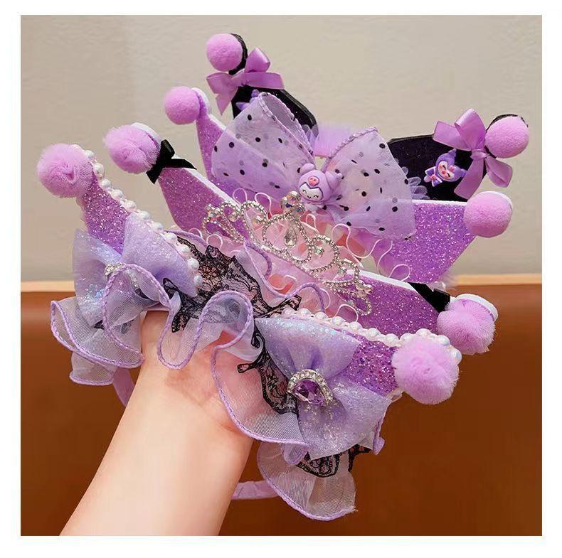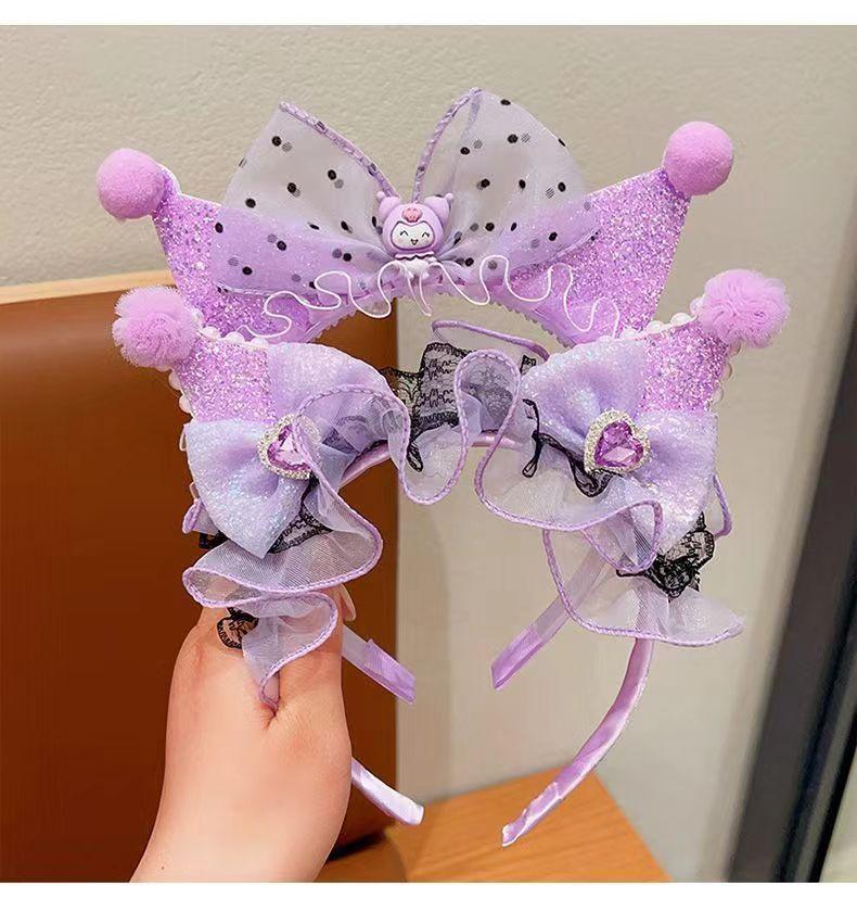 Diadema para niña, linda diadema kulomi morada para bebé, lazo de malla antideslizante para niña, horquilla dulce