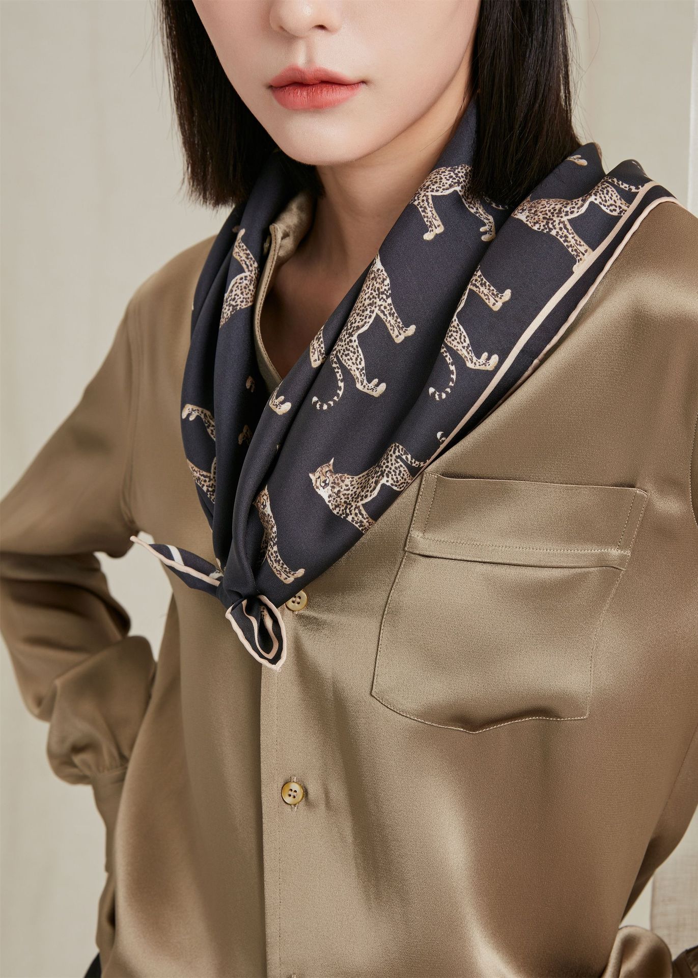 Bufanda de Seda de Morera Nueva Patrón Animal Leopardo Bufanda de Seda Bufanda Cuadrada Temperamento Elegante para Mujer Chal Pequeño Venta al por Mayor
