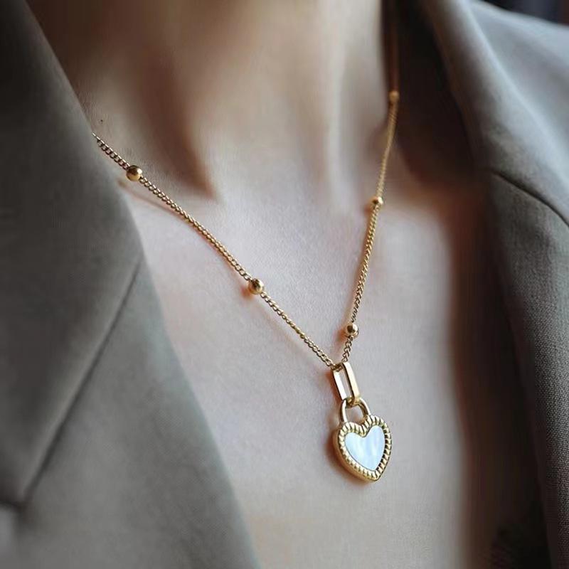 Collar simple de doble cara en blanco y negro con candado de amor para mujer, cadena de clavícula con corazón de melocotón a juego, estilo retro, ligero y lujoso, accesorios para collar en forma de corazón