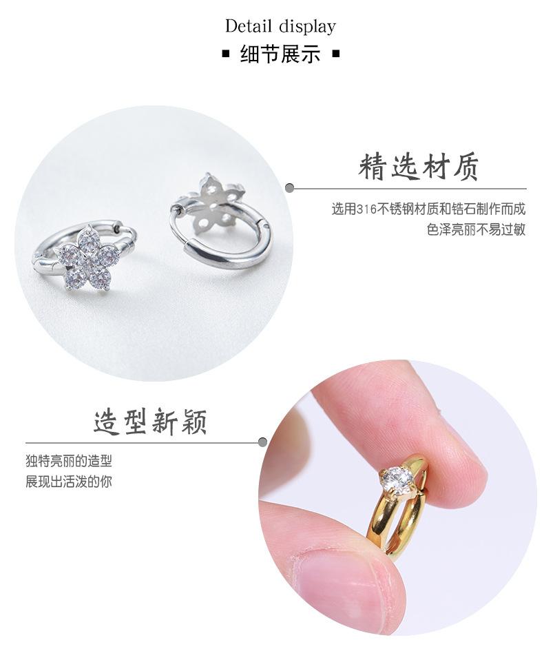 Compra Pendientes de acero inoxidable con hebilla de oreja de circonita para hombre y mujer, de estilo japonés y coreano, con hebilla de oreja sencilla, de estilo hip hop y acero de titanio, al por mayor al por mayor en Joom.pro