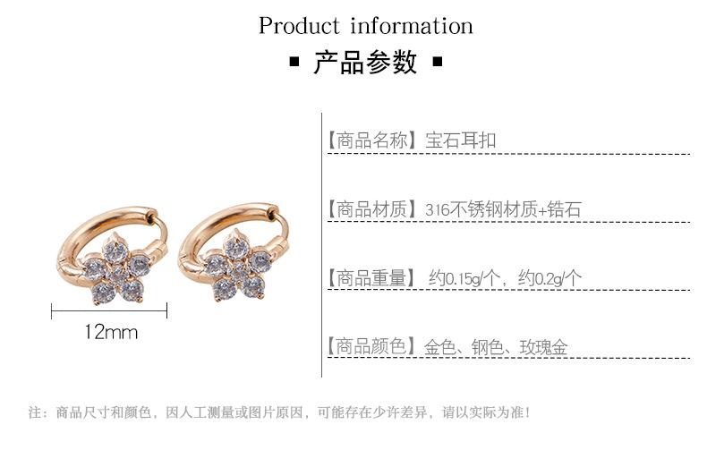 A stainless steel gem ear buckle/5/vacuum gold-plated