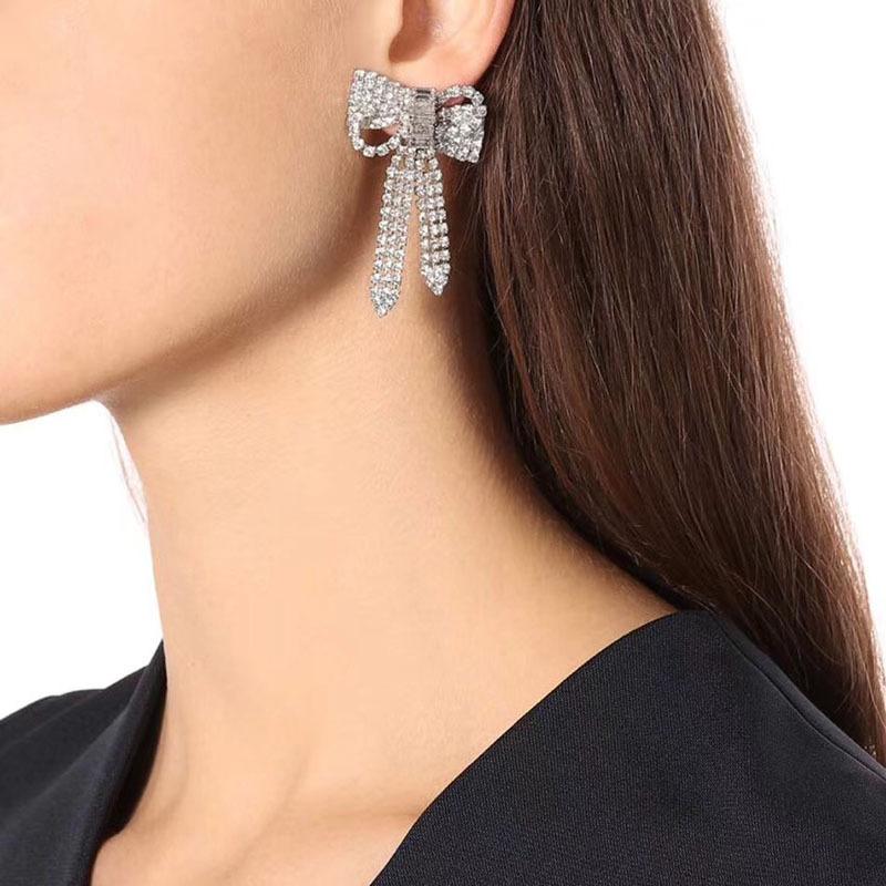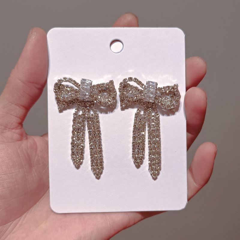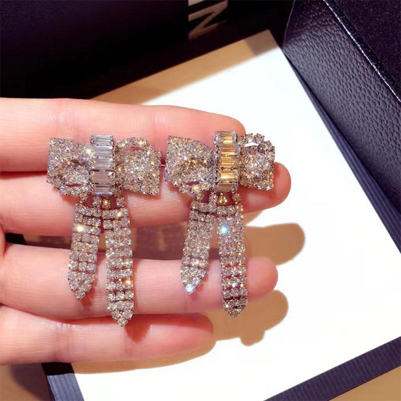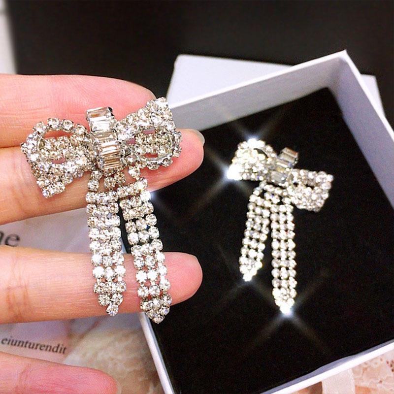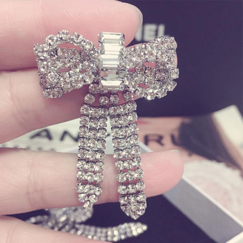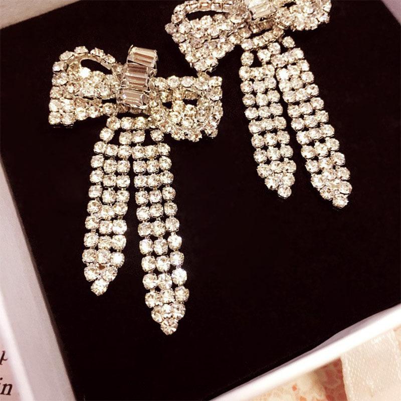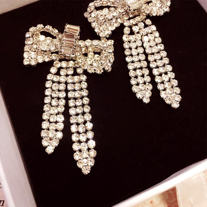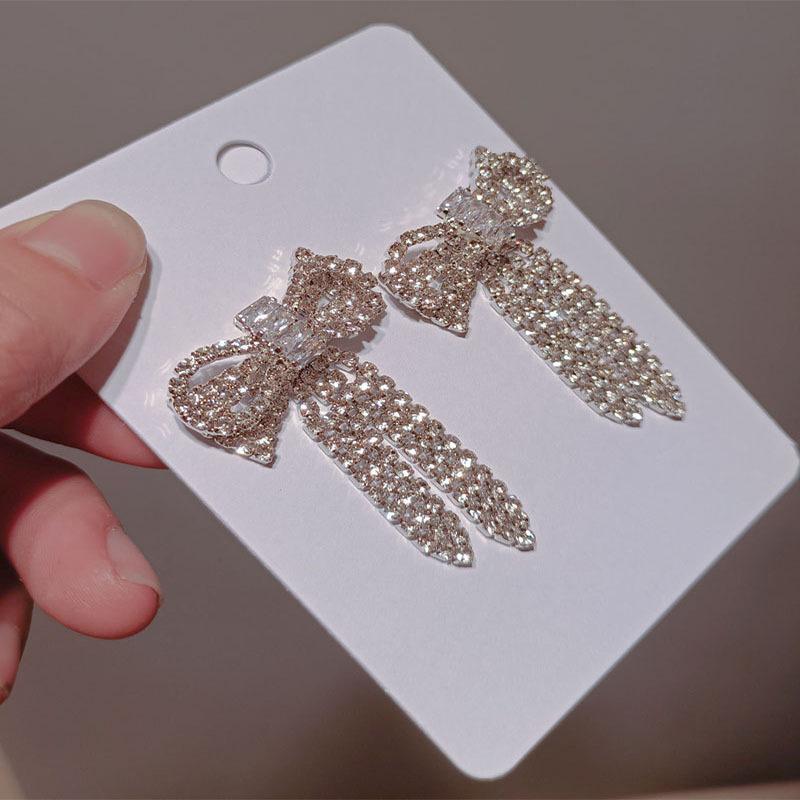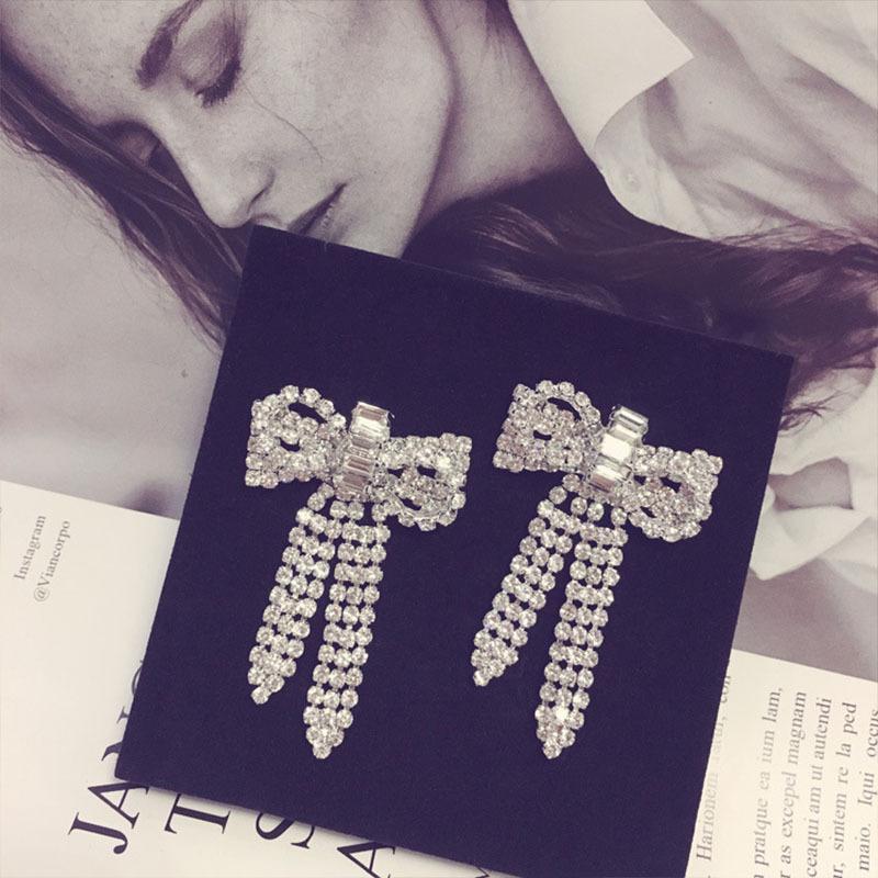 Pendientes Coreanos Versátiles de Otoño e Invierno con Borlas y Lazo Grande Exagerado, Pendientes de Botón con Diamantes, Pendientes Retro, Celebridad de Internet