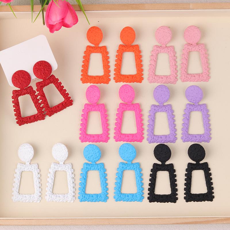 Pendientes trapezoidales huecos geométricos nuevos transfronterizos de Europa y Estados Unidos pendientes de acrílico de temperamento de color de estilo punk pendientes