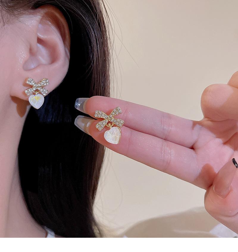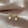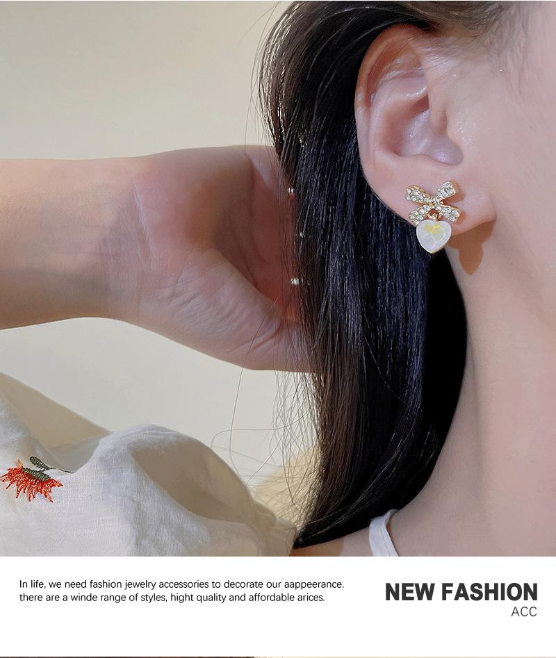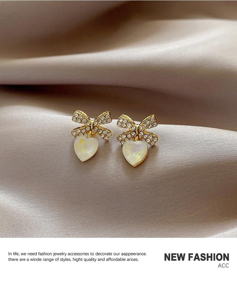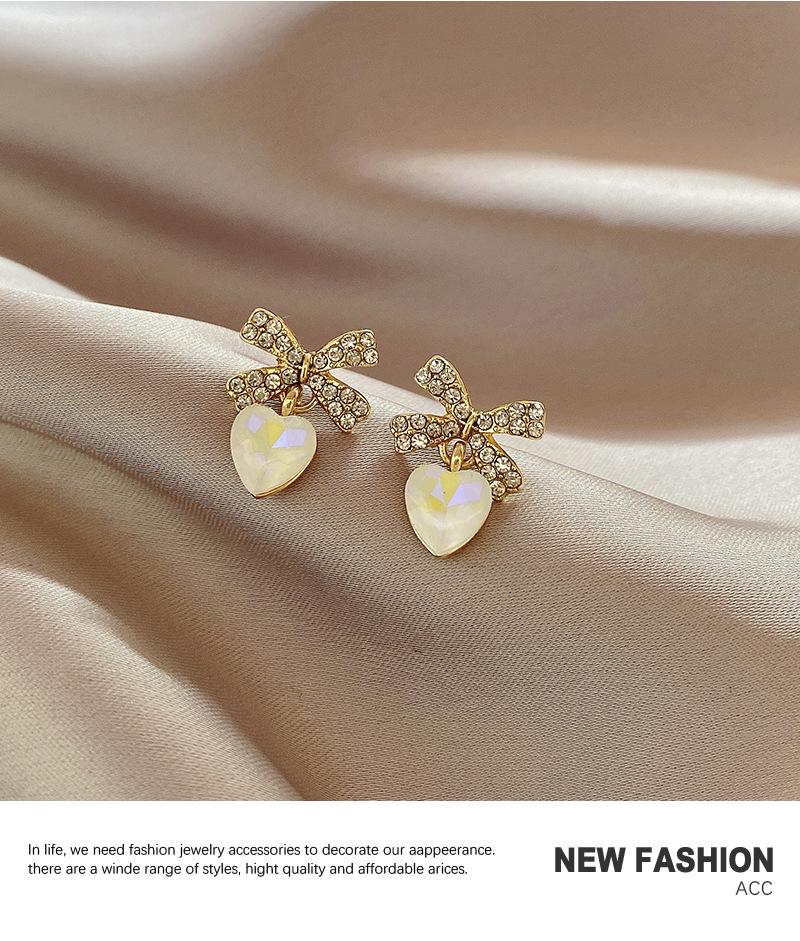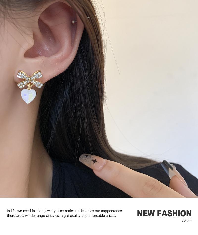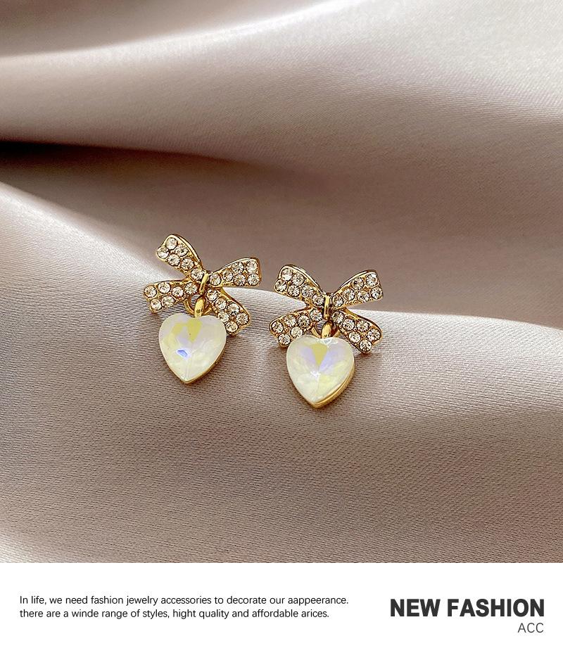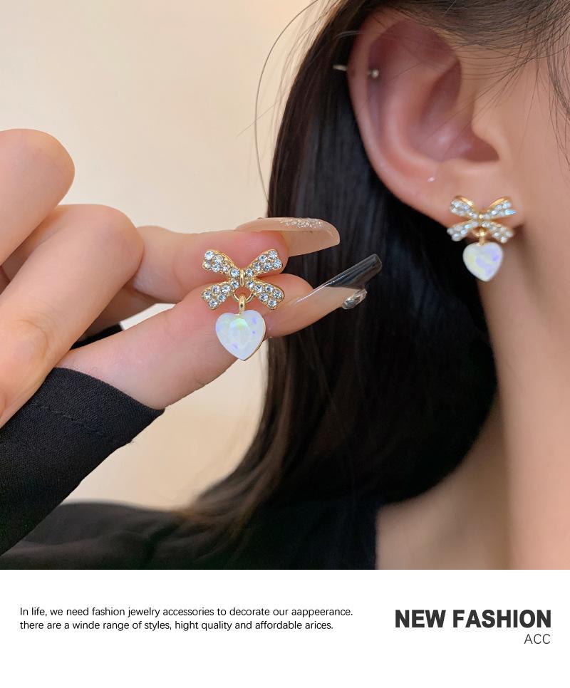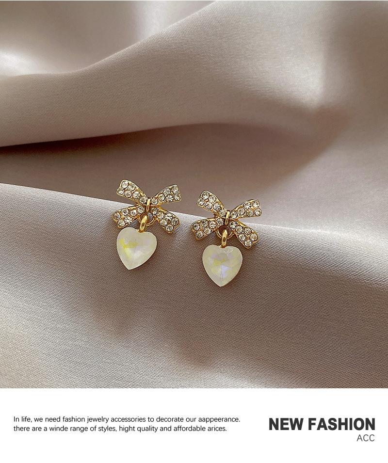 Pendientes de lazo elegantes de estilo coreano con diseño de hada súper elegante, pendientes retro de alta gama con diamantes de amor, pendientes que combinan con todo para celebridades de Internet.