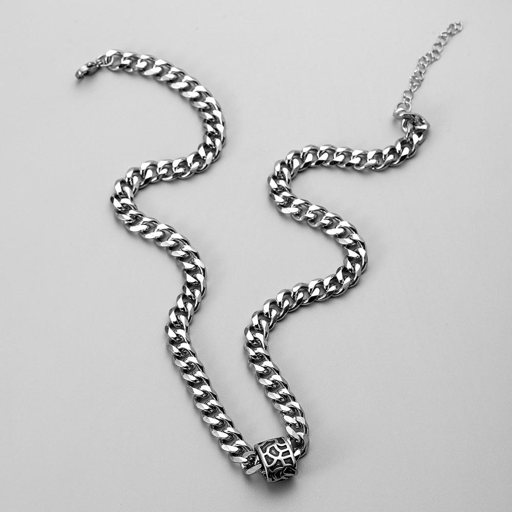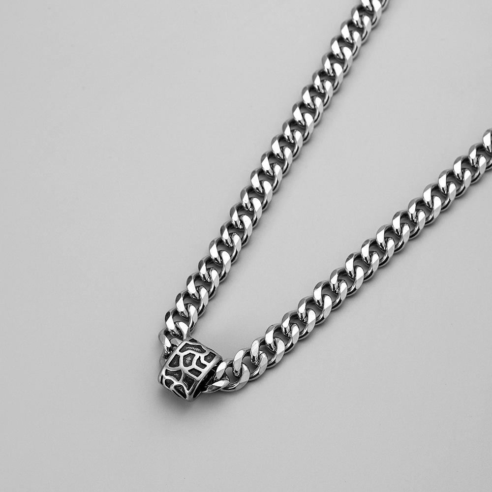 Collar de cadena cubana perforada con estampado de leopardo retro de acero inoxidable simple para hombre, estilo frío, combina con todo, transfronterizo europeo y americano.