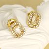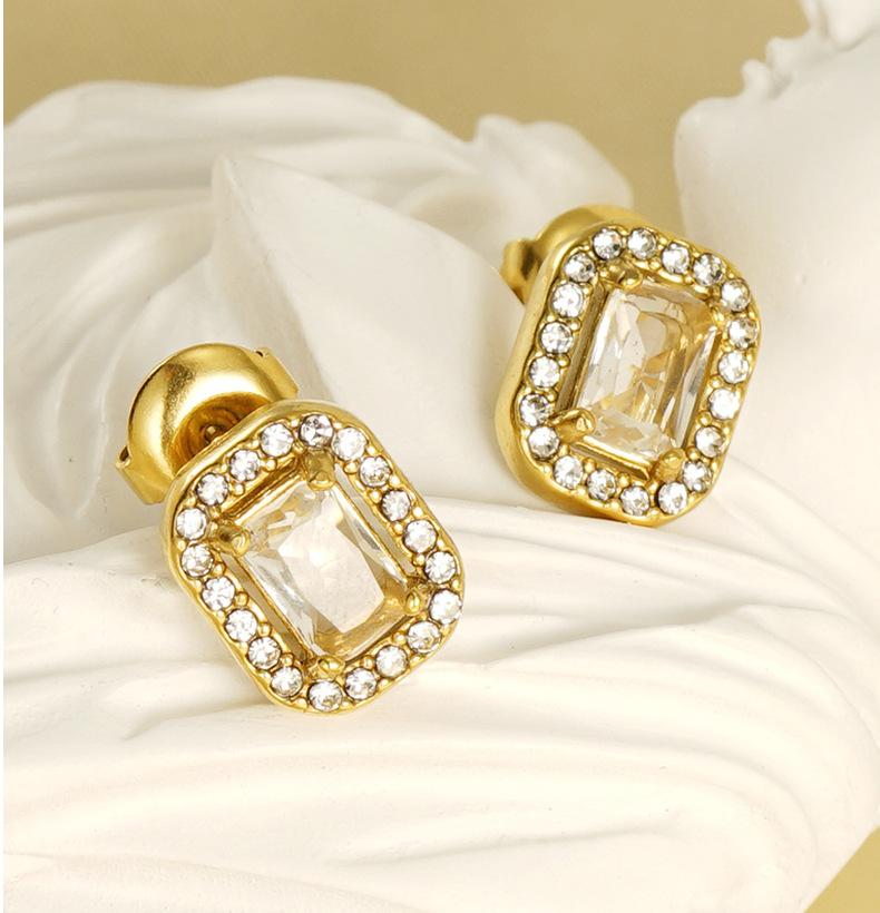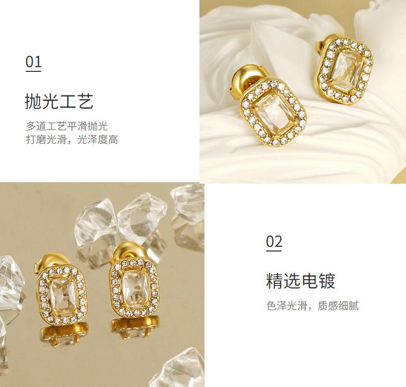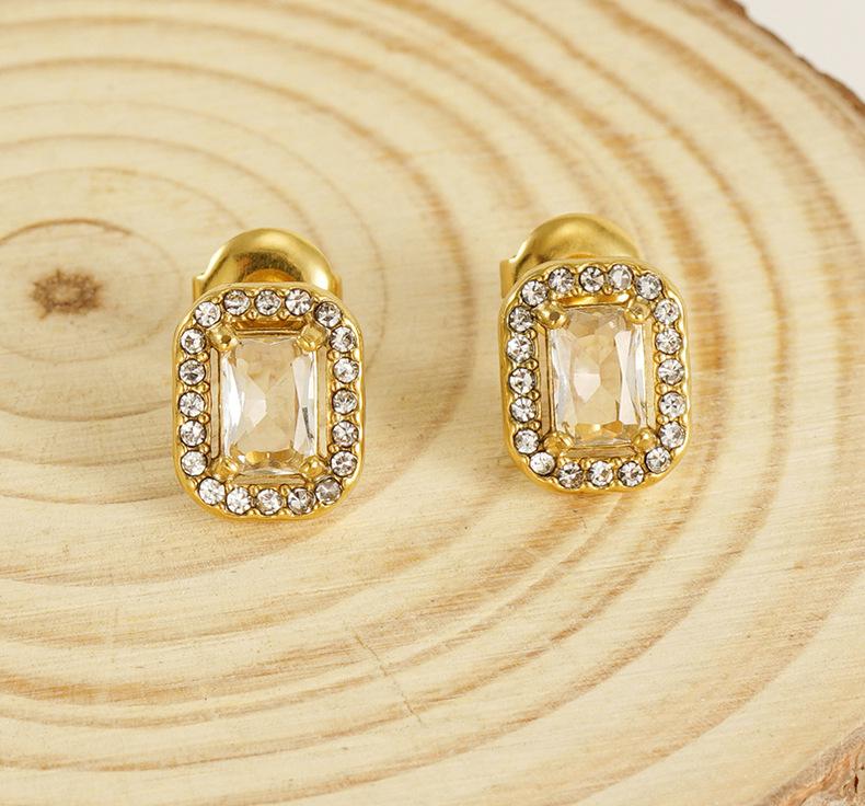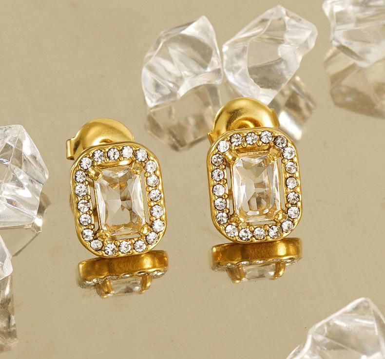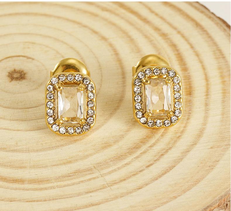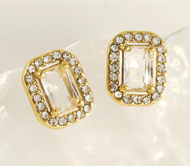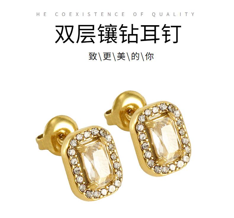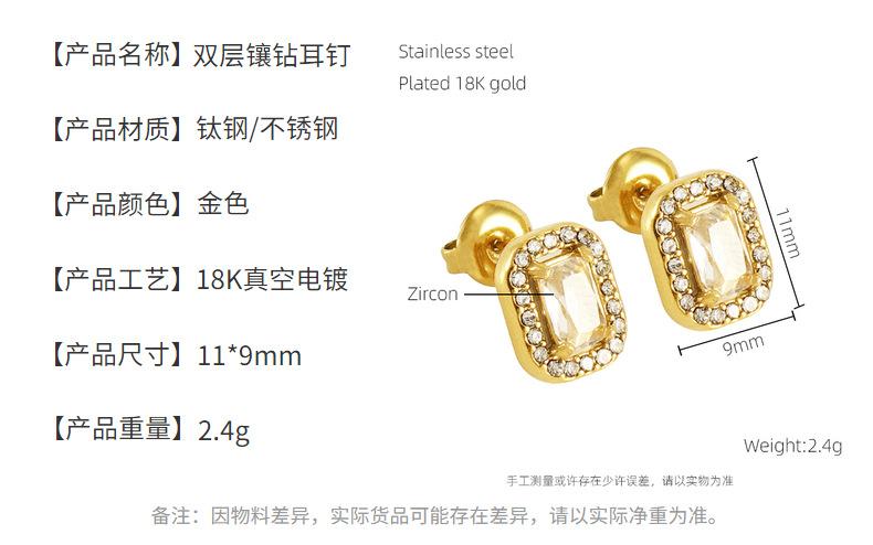 Pendientes de acero inoxidable de titanio con circonitas de doble capa, estilo europeo y americano, cuadrados, de alta calidad, con diamantes, al por mayor.
