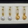 Multi-wear j-shaped earrings with white beads, Multi-wear j-shaped earrings with gold beads