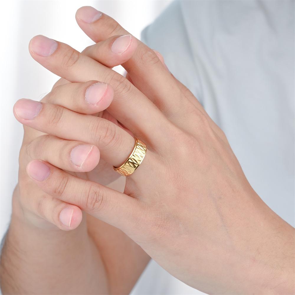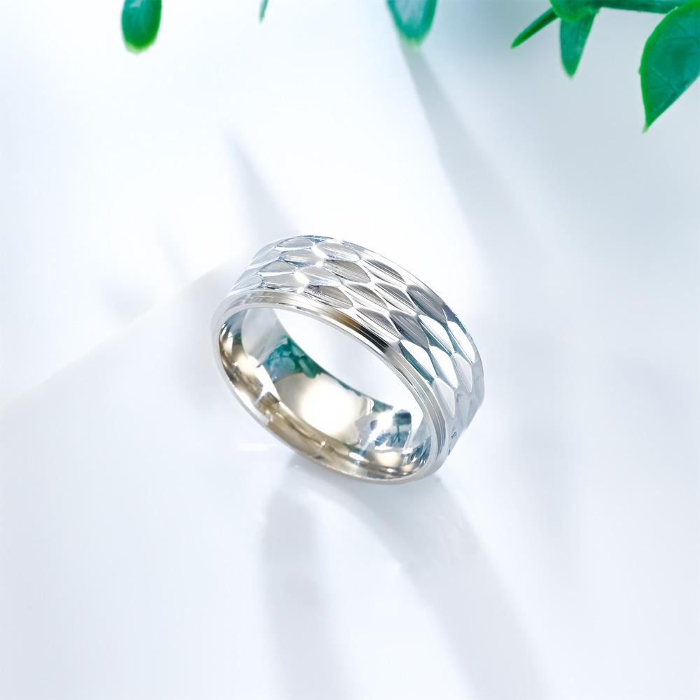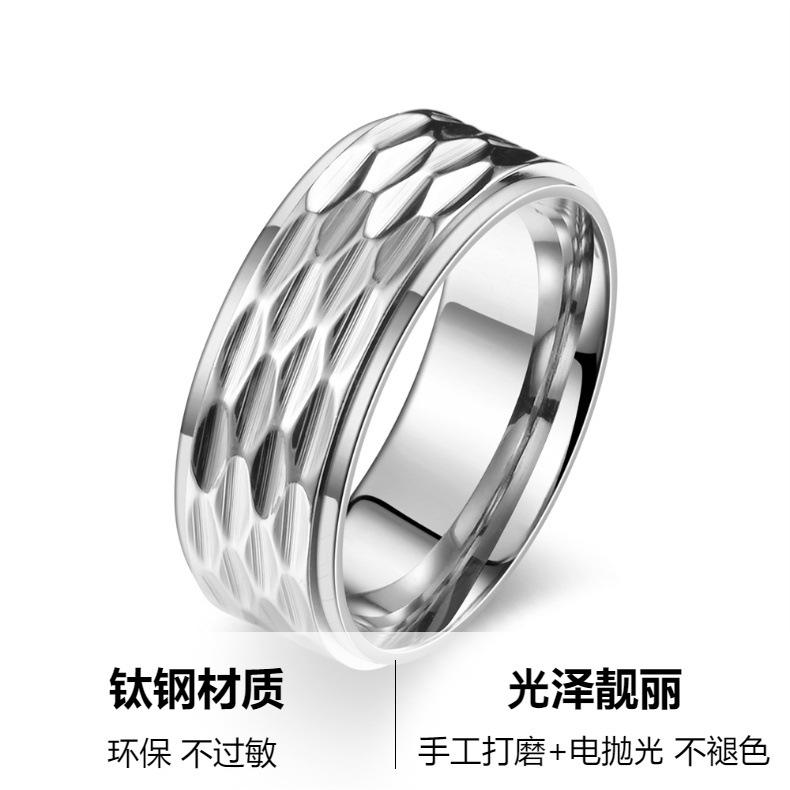 Anillo de Acero de Titanio para Hombre de Venta Caliente Transfronterizo Anillo de Pareja de Acero Inoxidable a Cuadros Hecho a Mano de Moda Personalizado Único