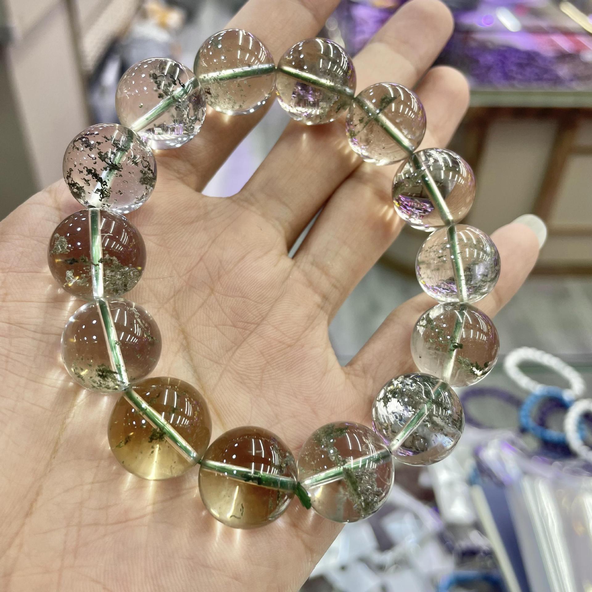 Pulsera de estrella de grano grande fantasma verde cuerpo de vidrio punto flotante sin optimización de pulsera de cristal natural fabricantes Qiao en