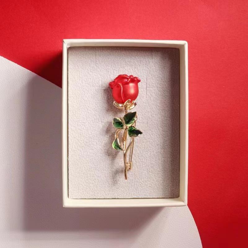 Nuevo broche de rosa roja estilo palacio retro, alfiler de moda, textura romántica, accesorios de ropa elegantes y sencillos.