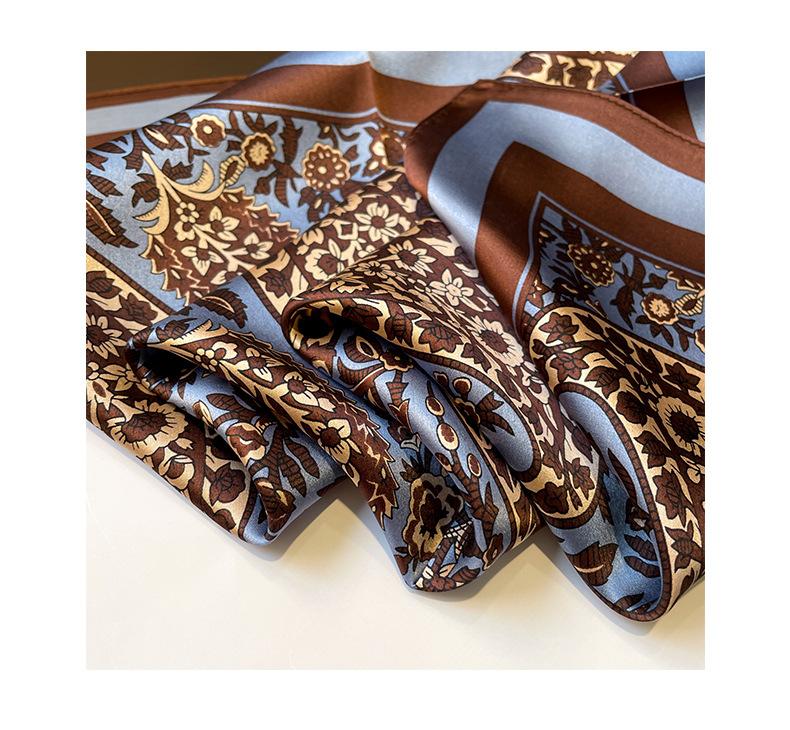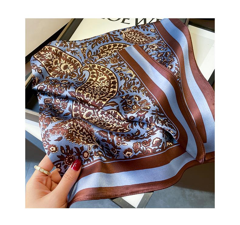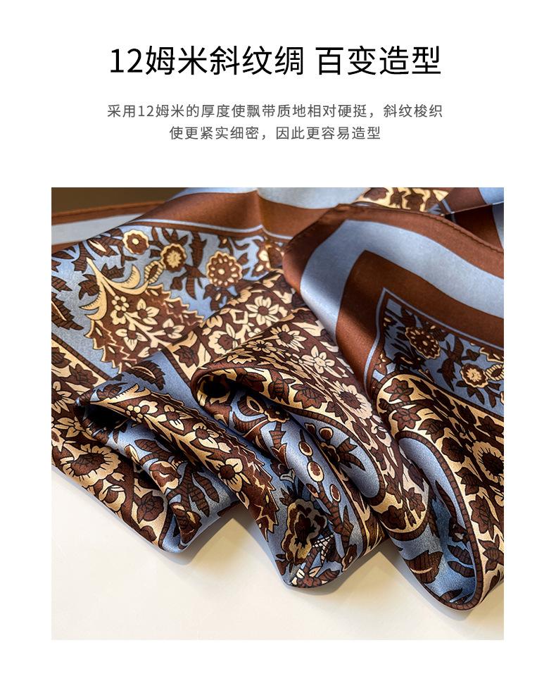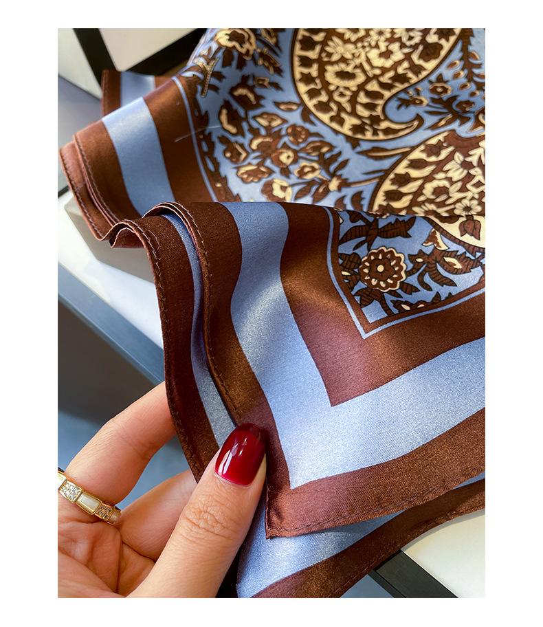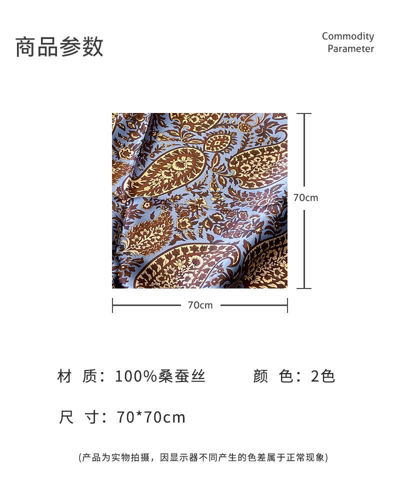 Pañuelo cuadrado pequeño de flores retro intelectual 2024 pañuelo de seda para mujer seda de morera azul flor de anacardo pañuelo