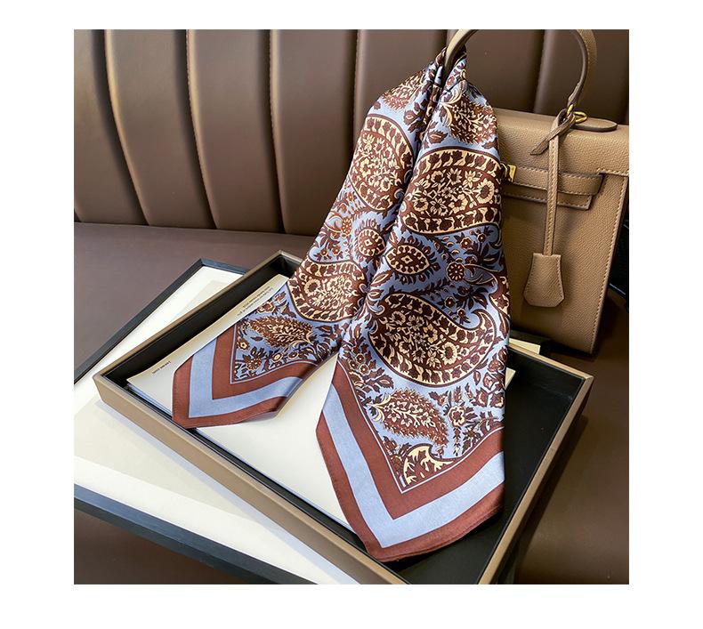 [Pañuelo de seda pura de alta gama de Hangzhou, nuevo estilo de primavera y verano, estampado decorativo, cuadrado de 70 cm para mujer]