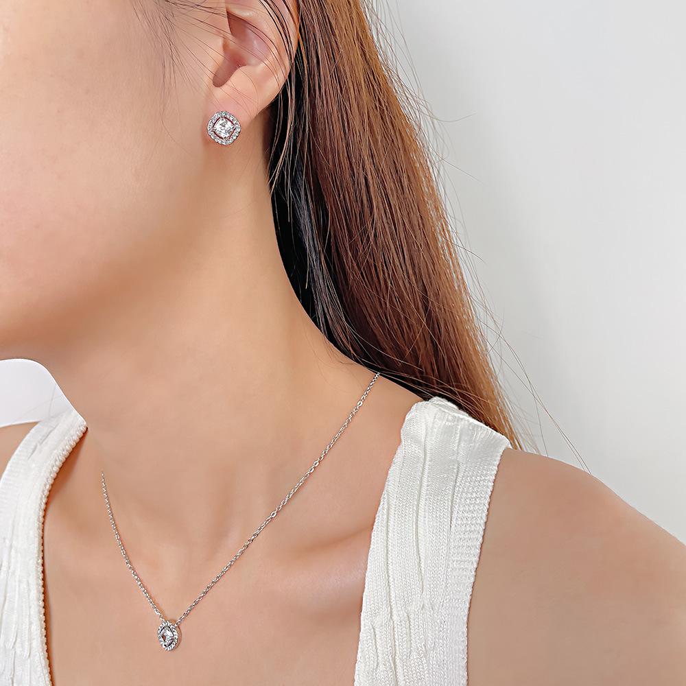Pendientes de diamantes de alta gama de estilo coreano, ligeros y lujosos, con colgante, joyería de moda, collar de acero de titanio a juego, joyería para mujer.