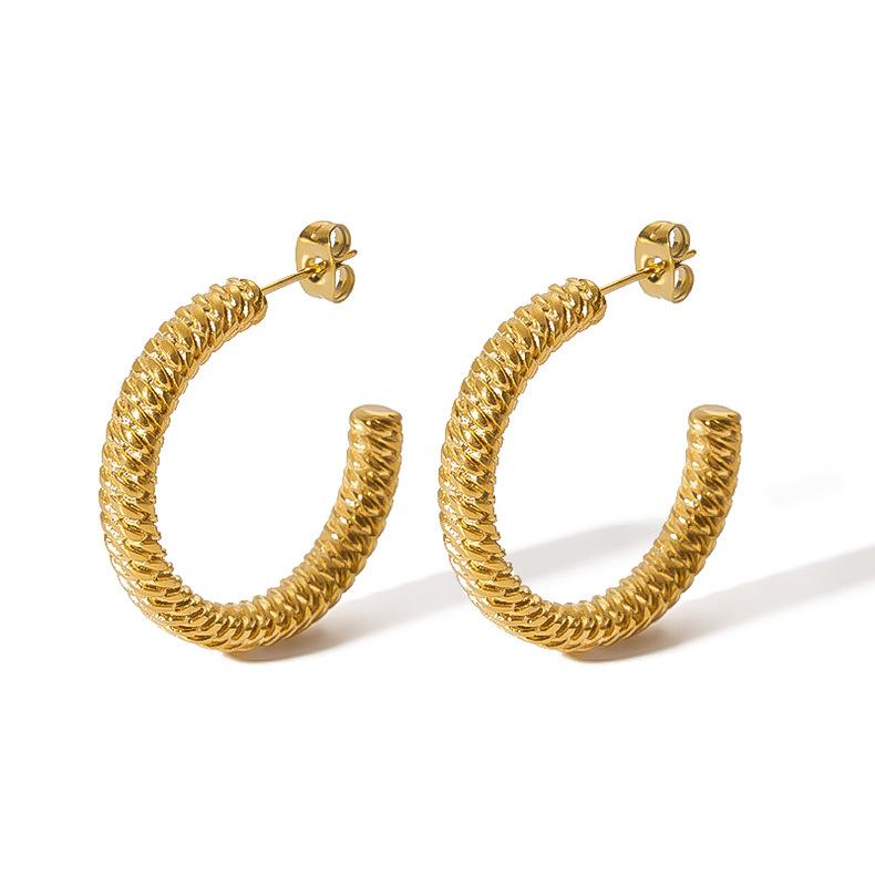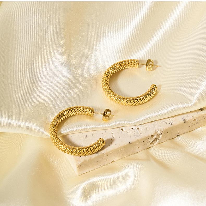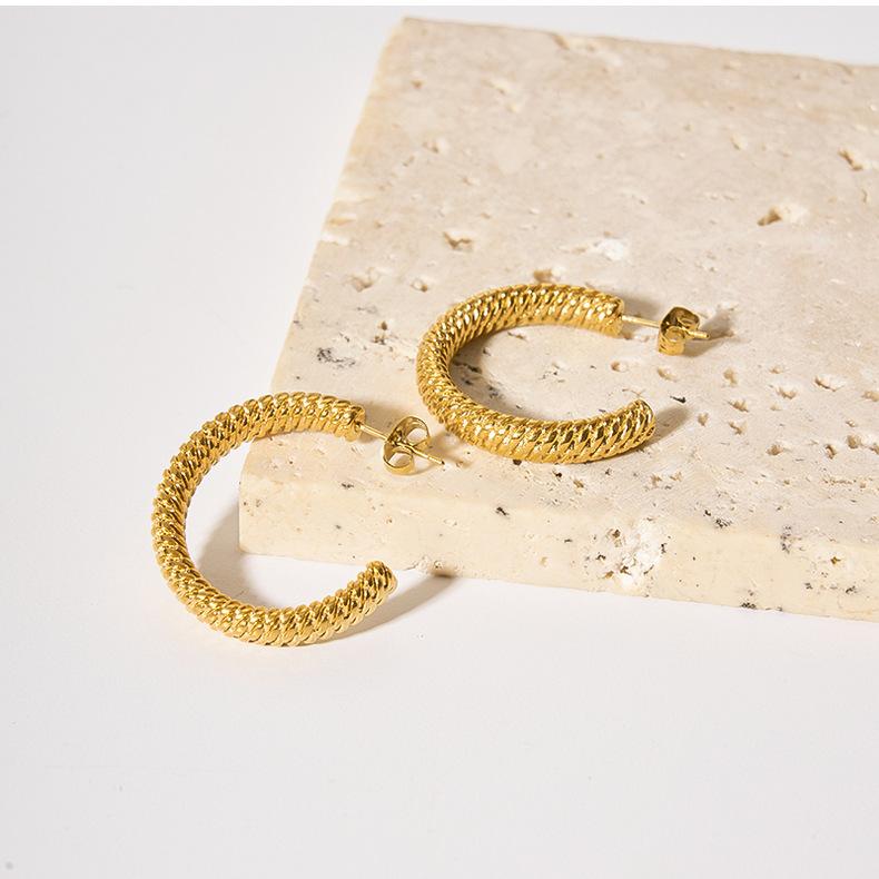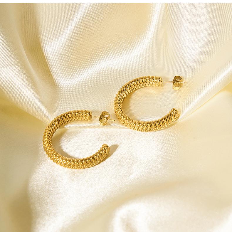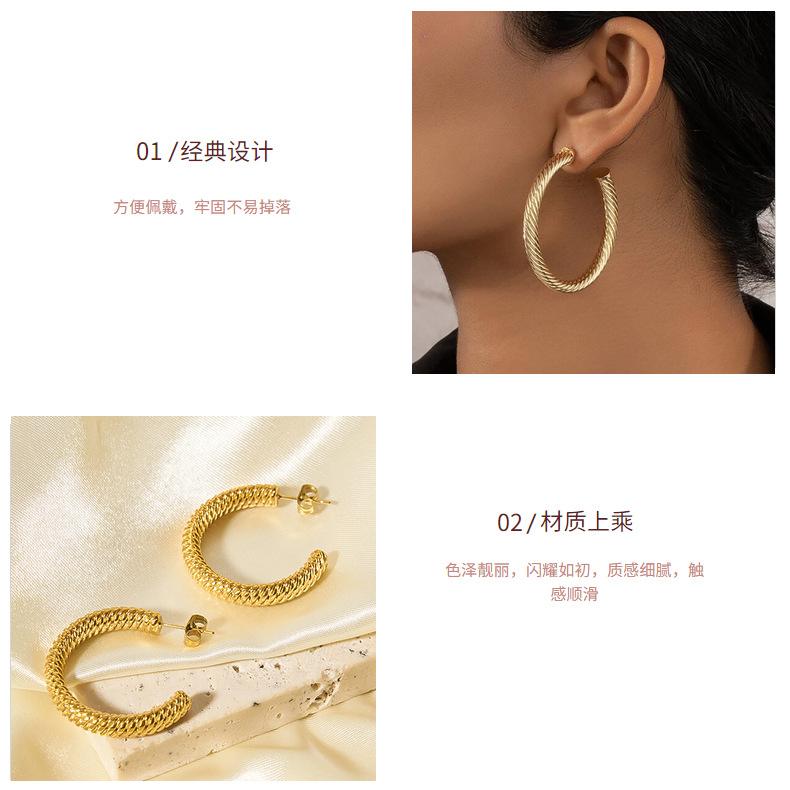 Pendientes minimalistas de hilo con personalidad de acero inoxidable de moda europea y americana, pendientes de temperamento que combinan con todo, chapados en oro de 18 quilates y de acero de titanio.