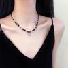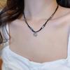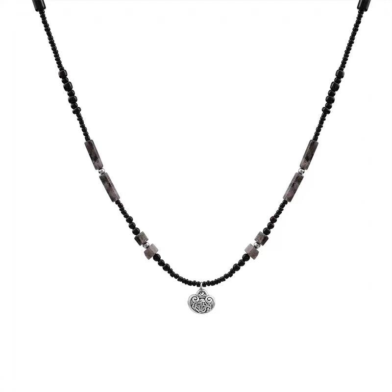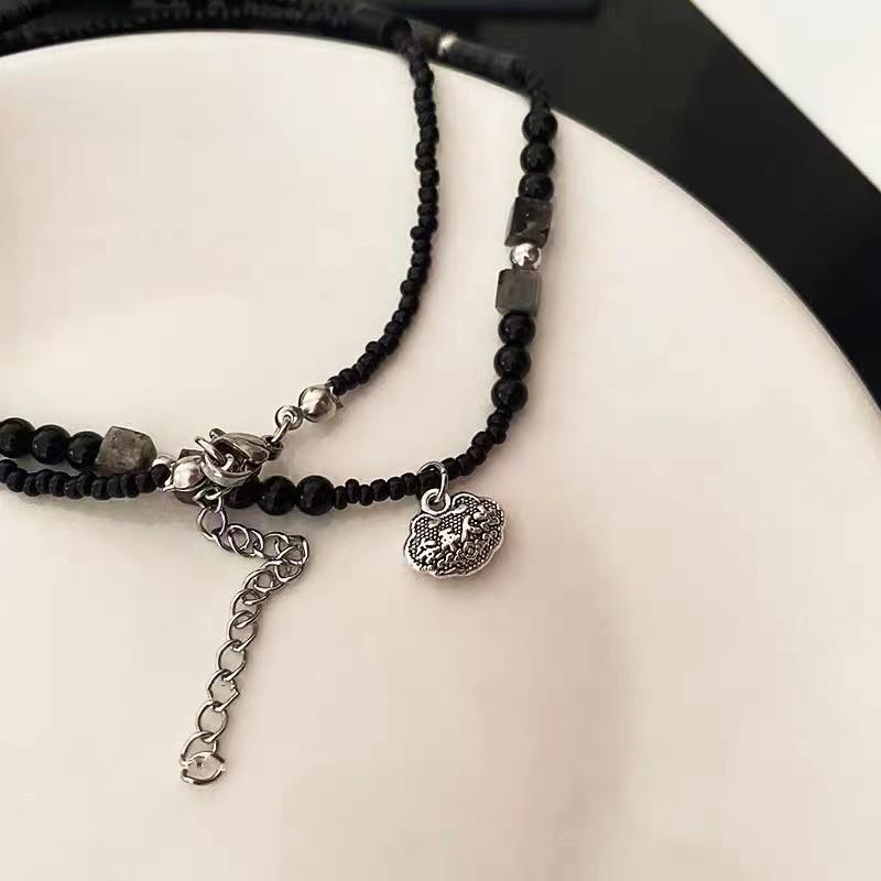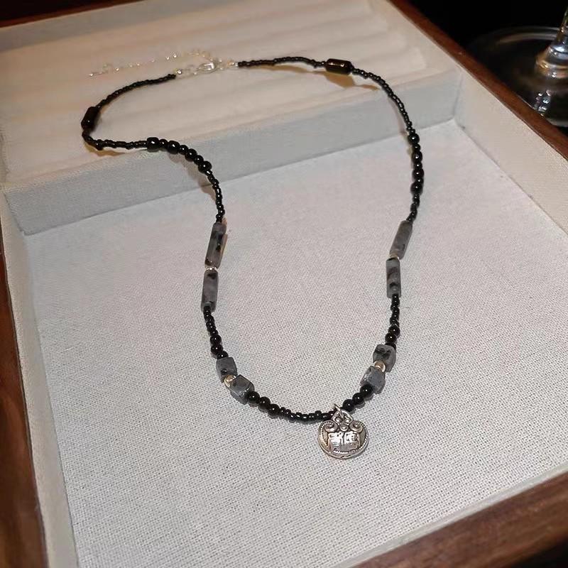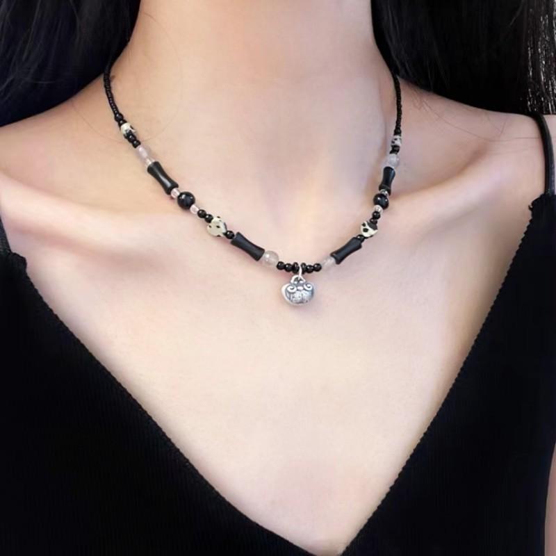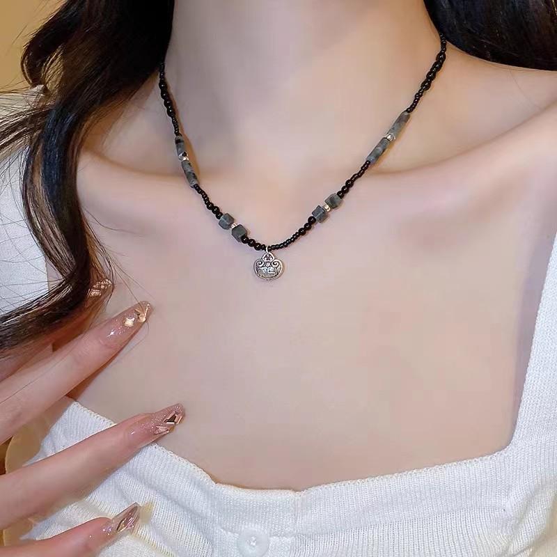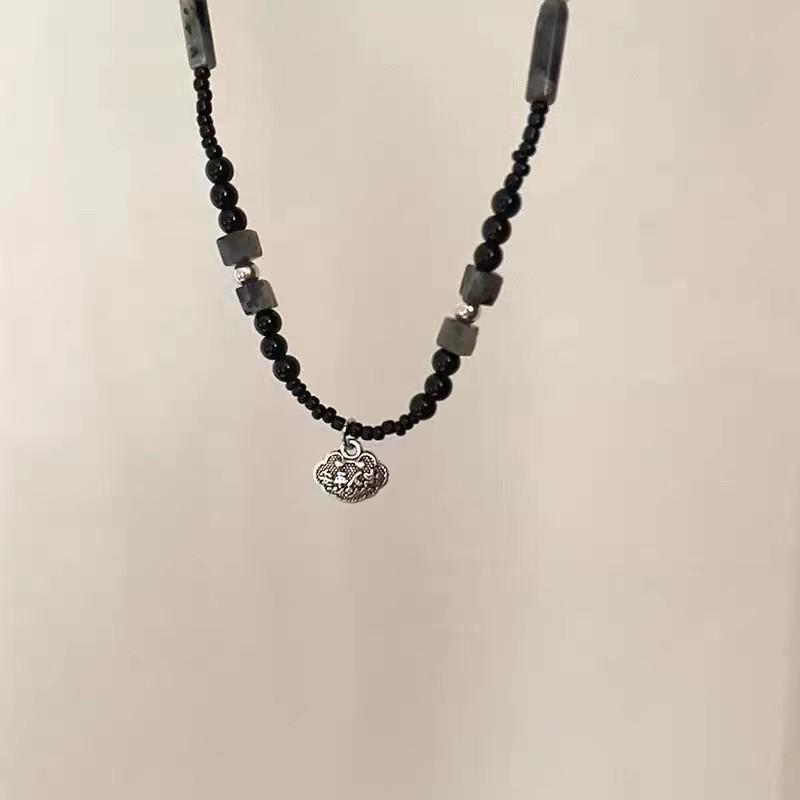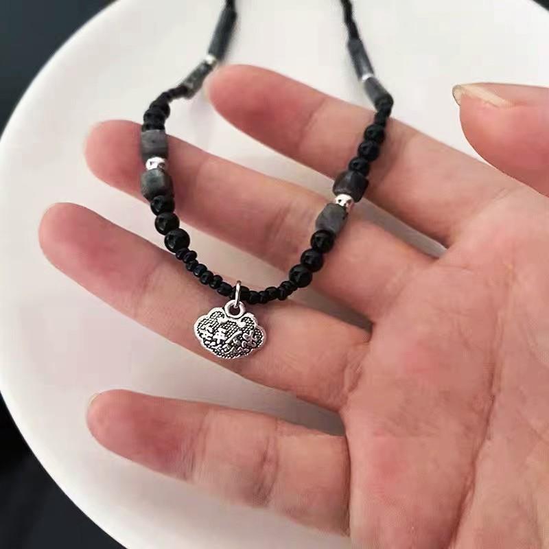 Collar con colgante de candado Ping An para mujer, estilo chino, pequeño, con cuentas negras, cadena de clavícula, a la moda.