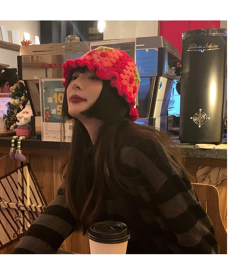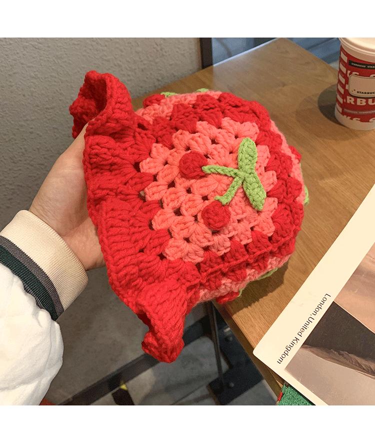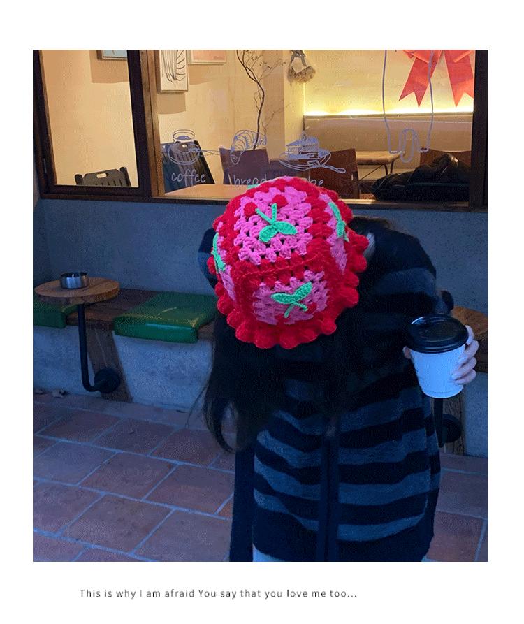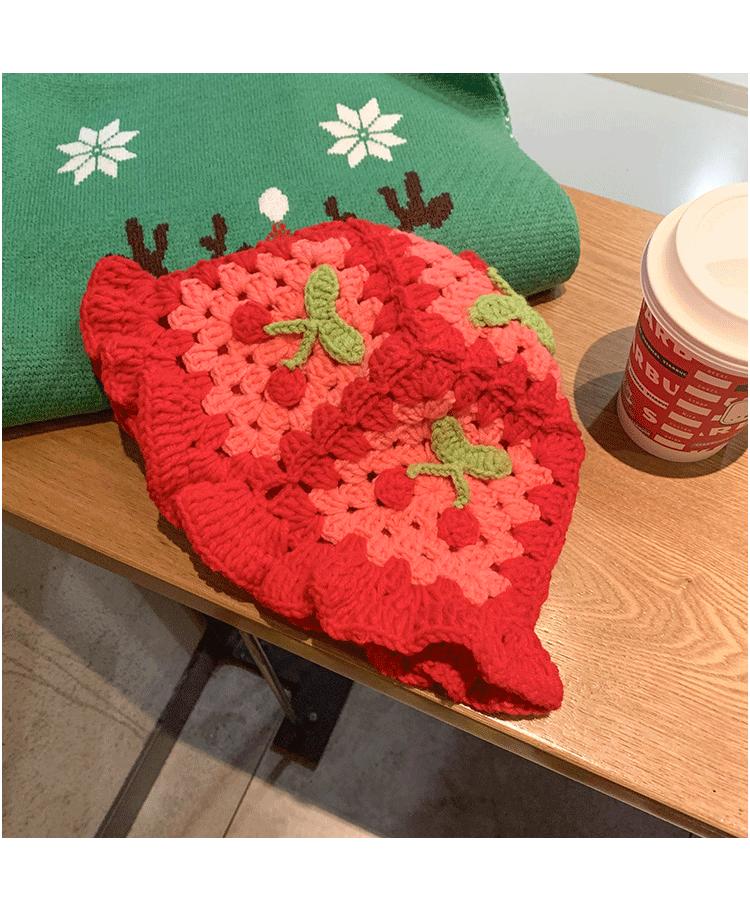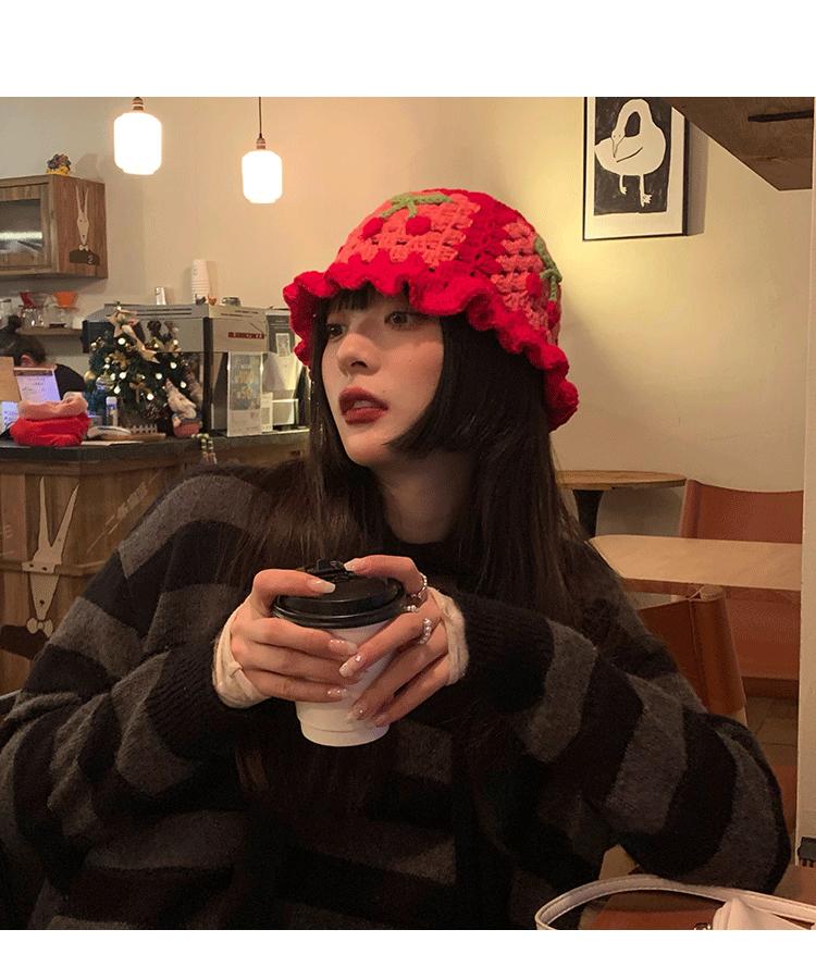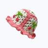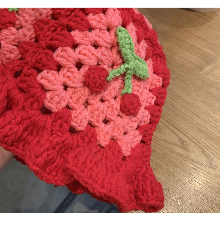 Sombrero de pescador de cerezas, tejido a mano, de lana, bonito y dulce, estilo celebridad, ideal para rostros pequeños.