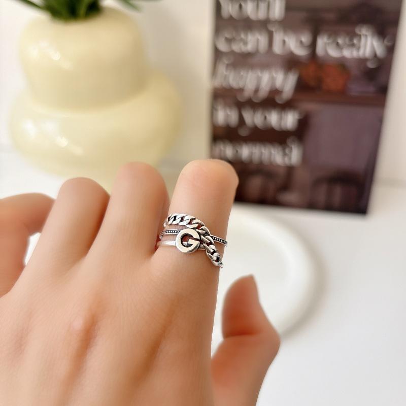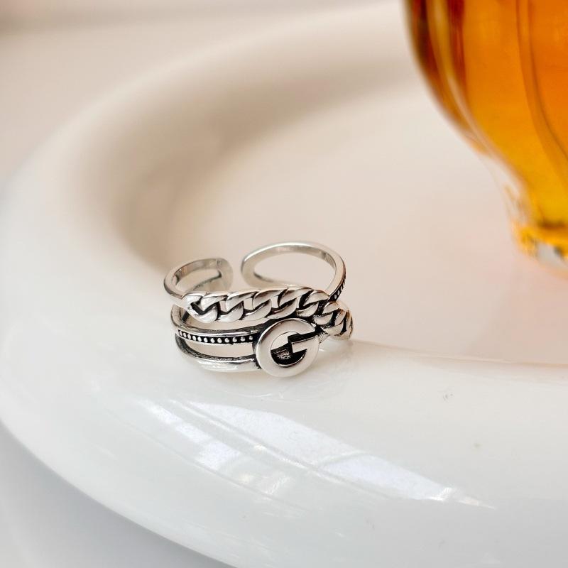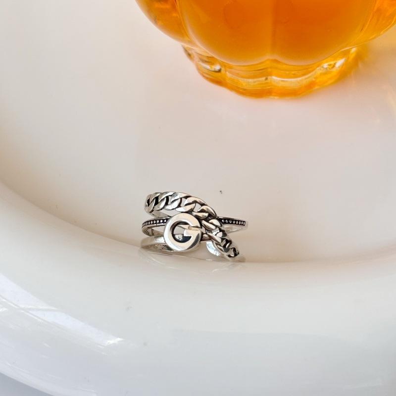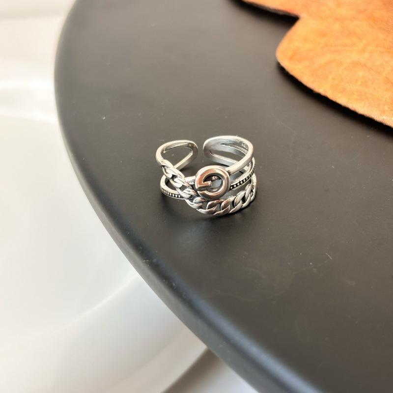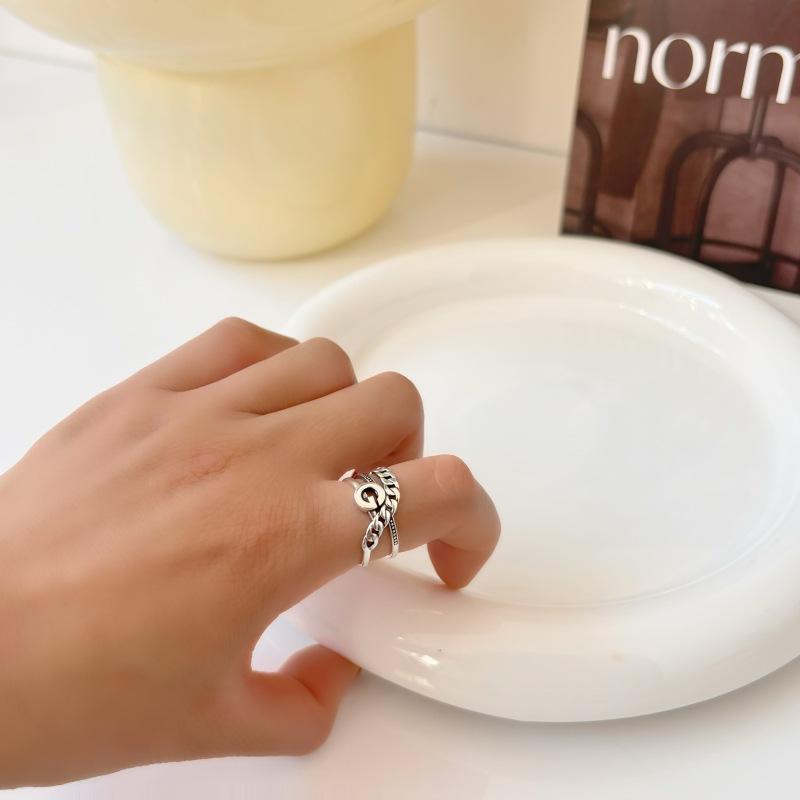 Anillo de apertura irregular con costuras de cadena antigua retro de plata esterlina S925 de Kashite, versión coreana