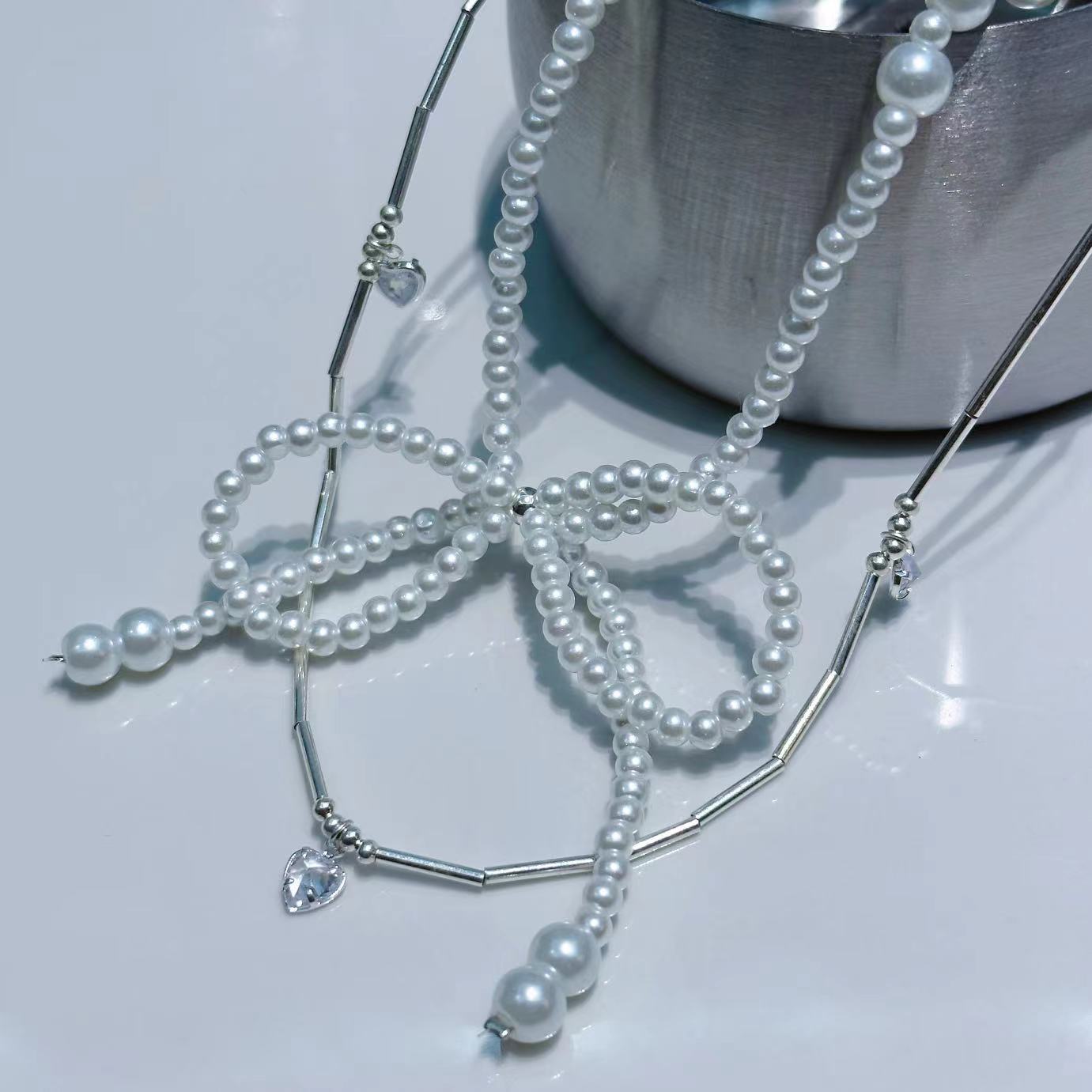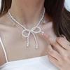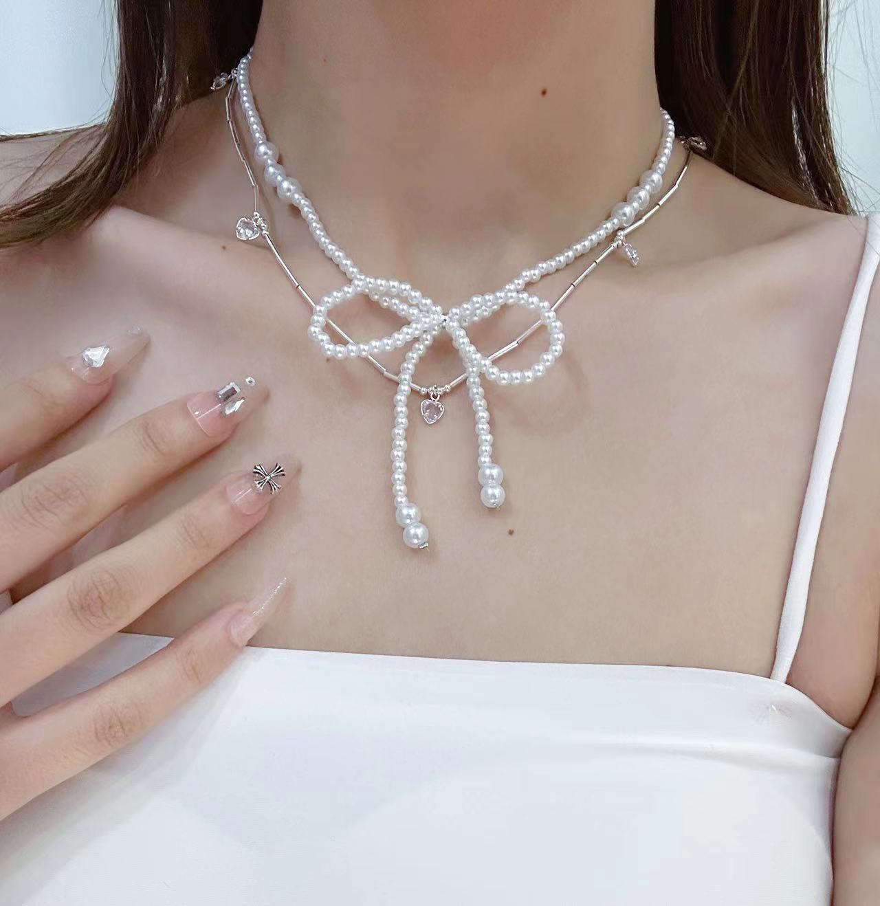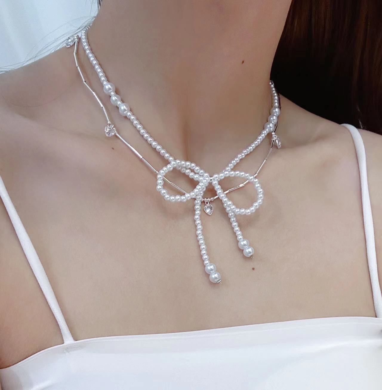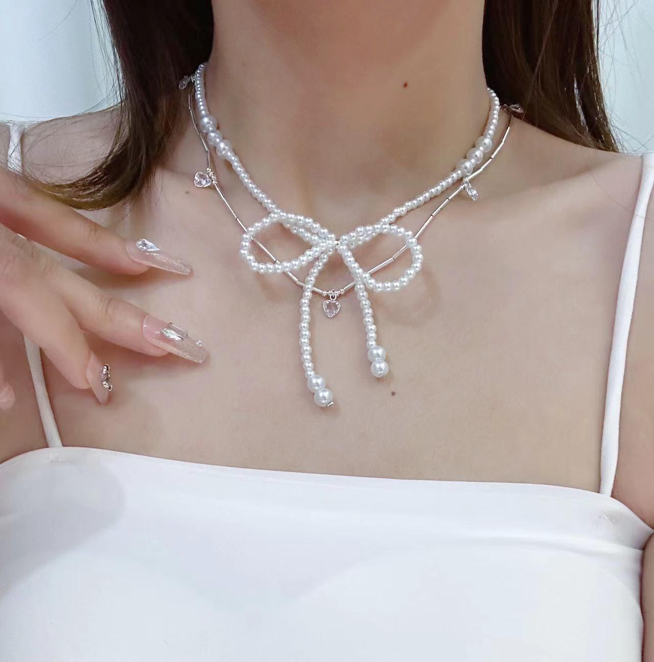 Collar de mariposa de perlas con forma de corazón, cadena de clavícula, ligero, de lujo, de alta gama, estilo nicho, francés, cadena de suéter para mujer.