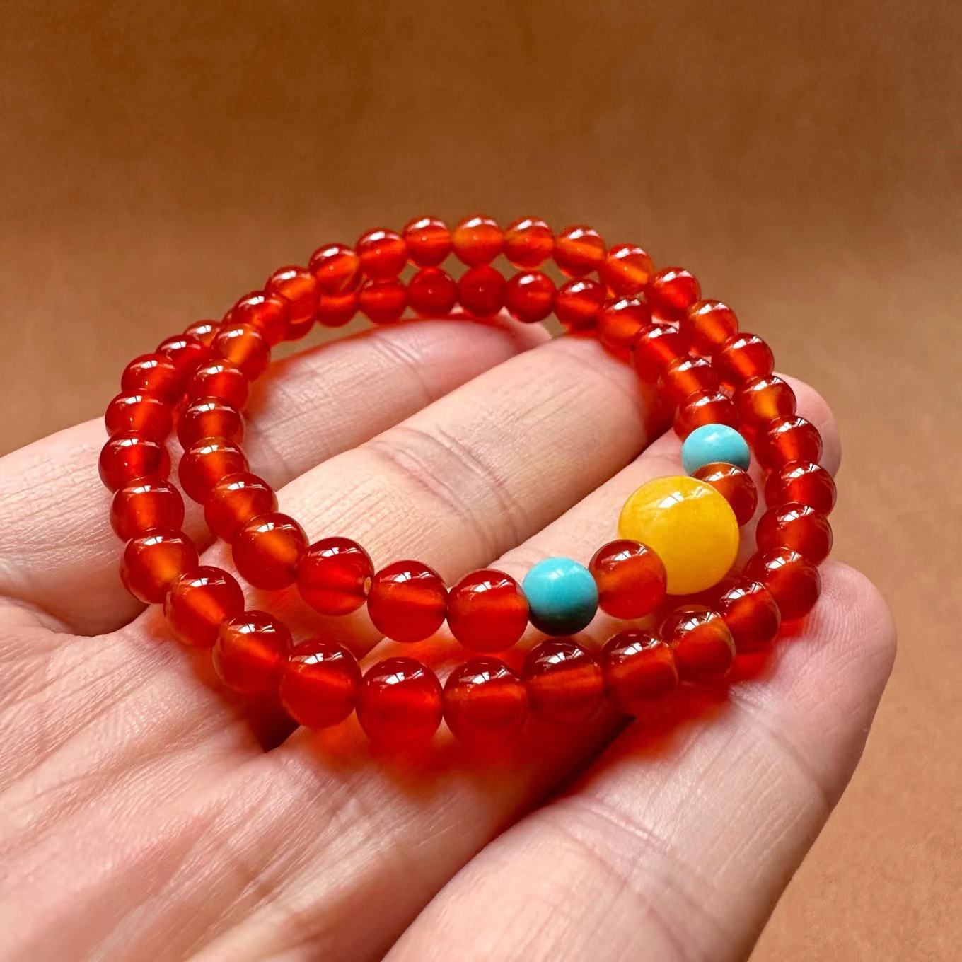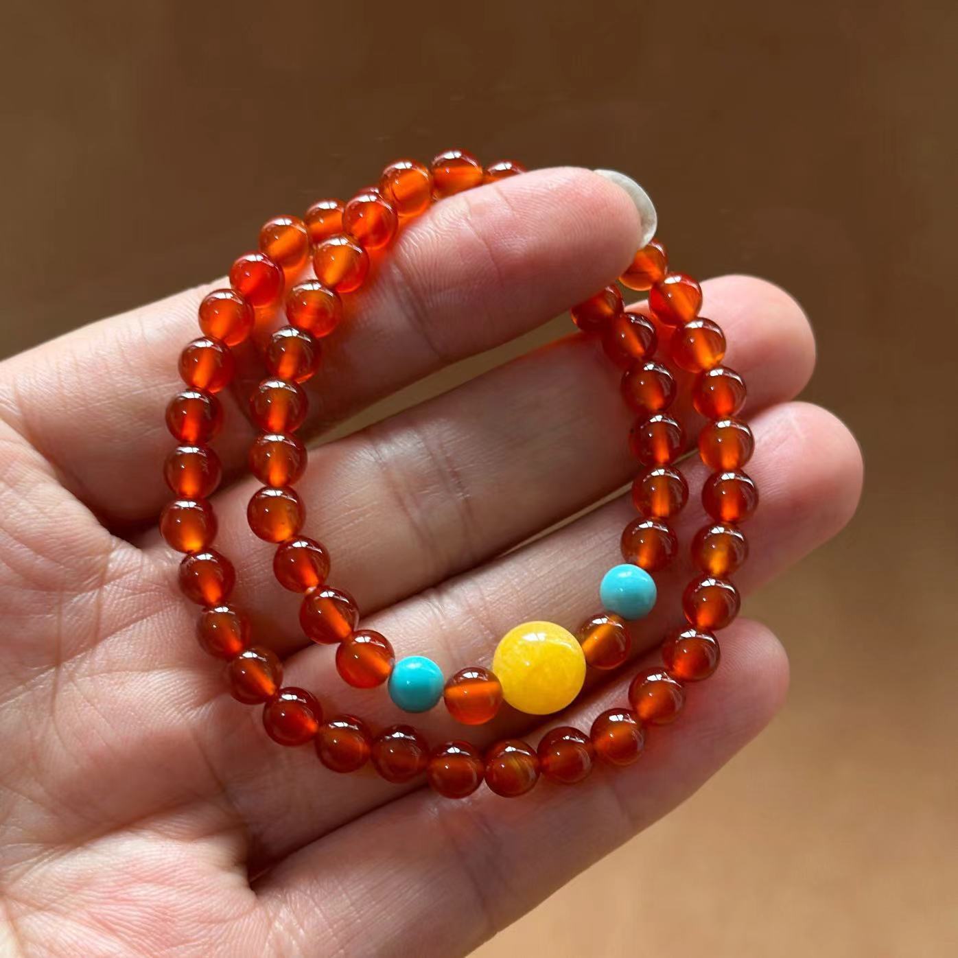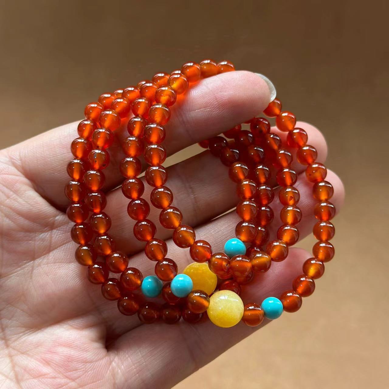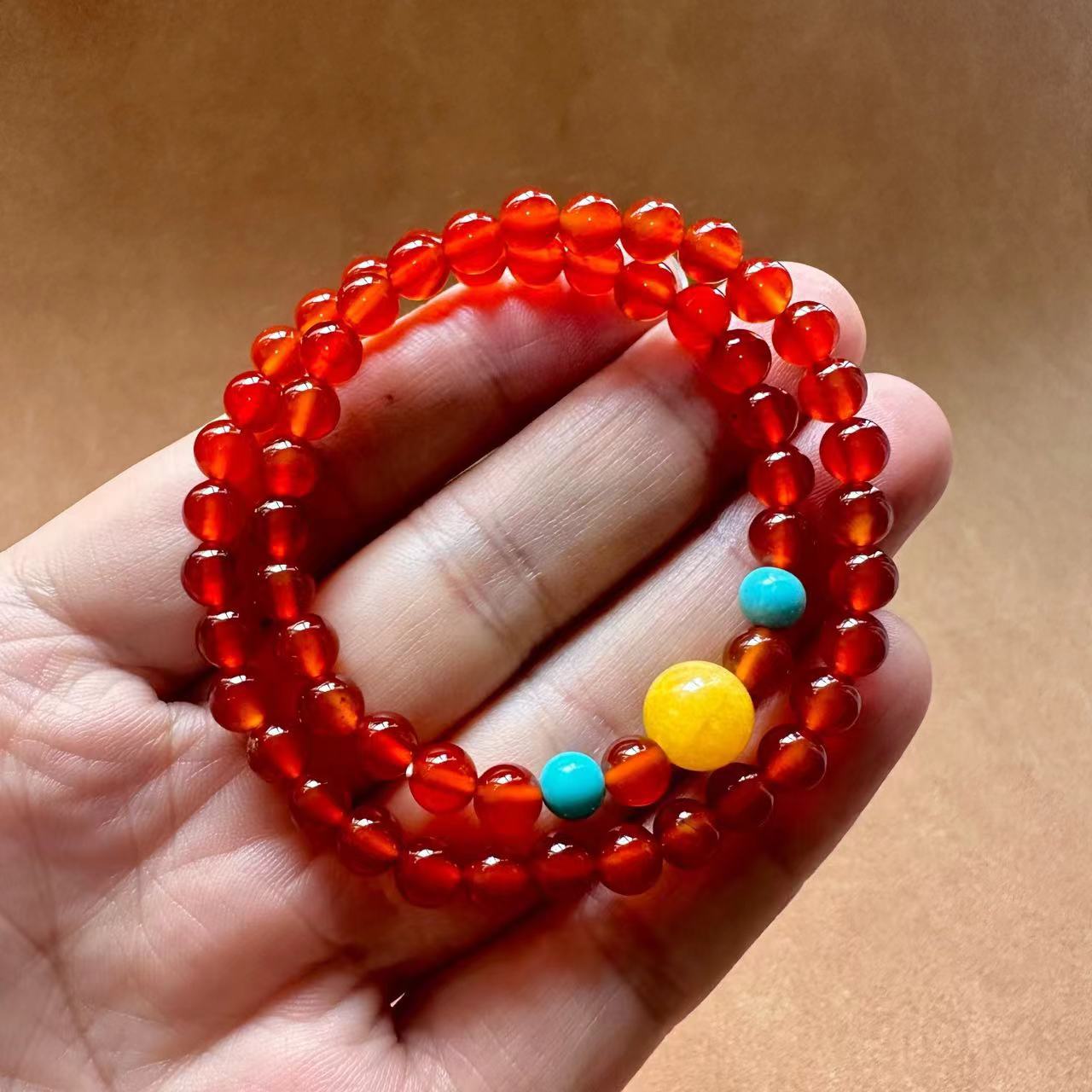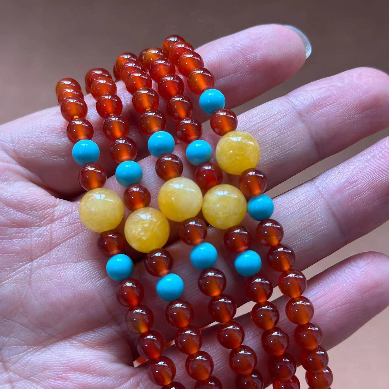 Pulsera de ágata roja natural multicírculo de 6 mm DIY para mujer con cuentas de calcedonia amarilla, turquesa y cristal al por mayor