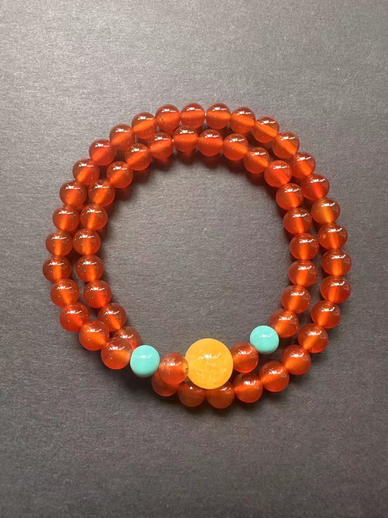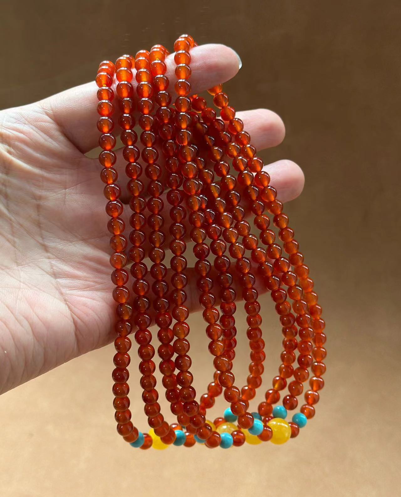 6mm red agate with yellow chalcedony [two circles], 5mm white agate hanging jade safety buckle [three circles]...