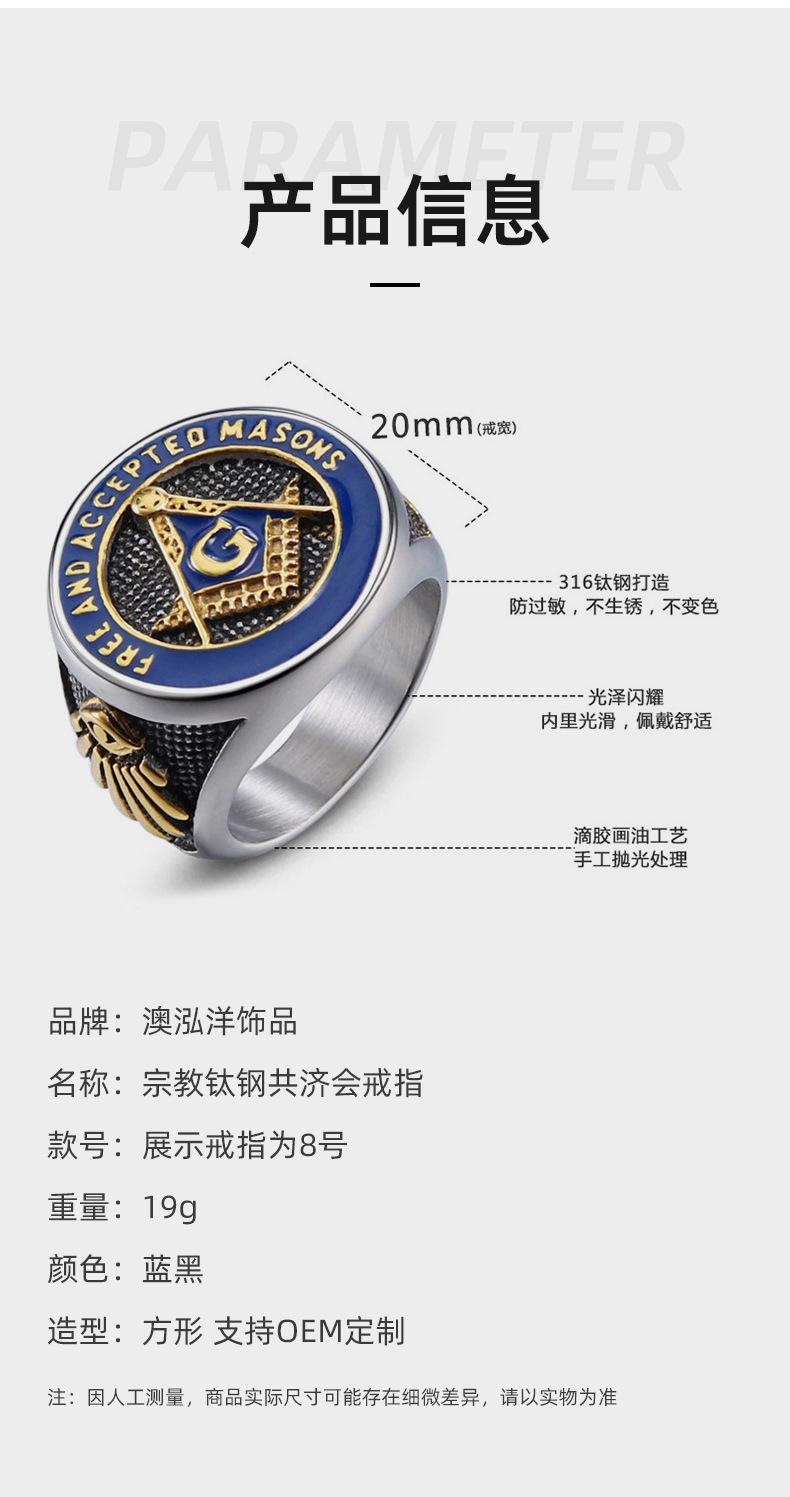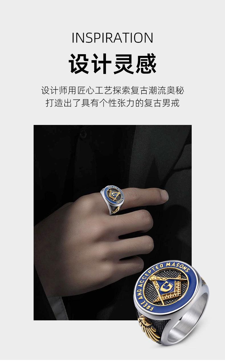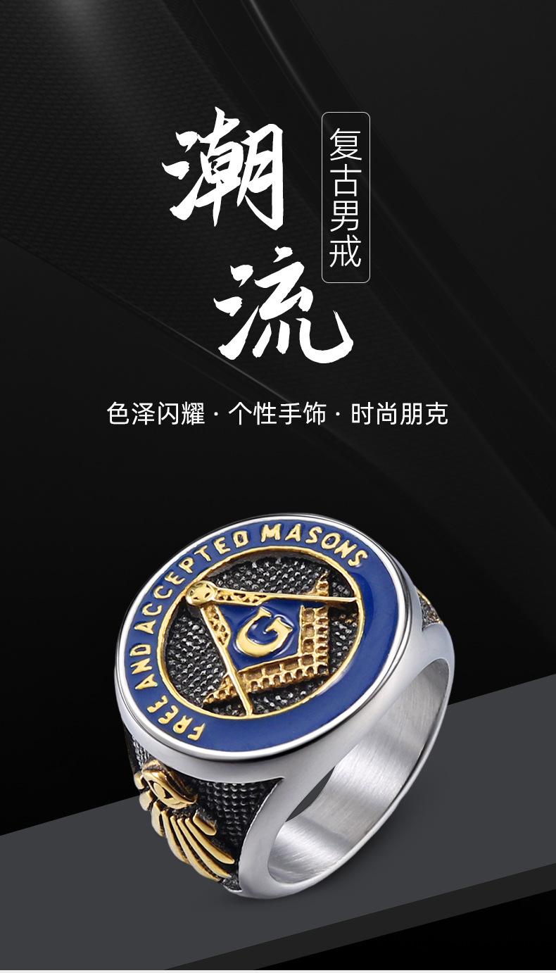 Moda Europea y Americana Anillo Masónico Religioso de Acero de Titanio Punk Vintage para Hombre Acero Inoxidable Gota de Pegamento HZ002